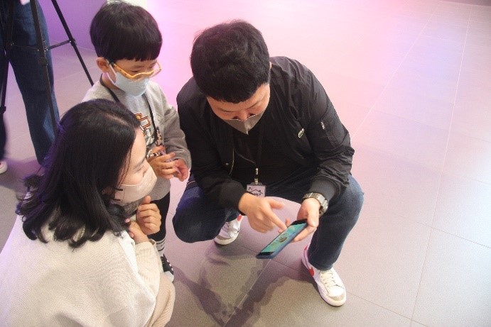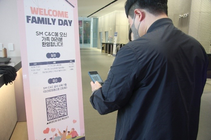 ▲배너 속 QR 코드로 미션을 확인하는 가족들. 출처=SM C&C