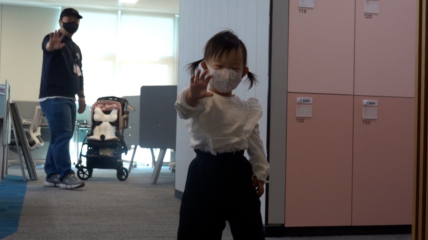 ▲사옥 곳곳을 탐방 중인 패밀리데이 최연소(19개월) 참가자. 출처=SM C&C