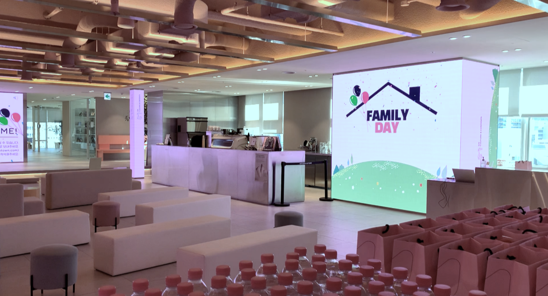 사옥 탐방 후 행사가 시작되기 전 라운지에 모인 가족들은 이 곳을 구경하고 사진을 찍는 등 자유로운 시간을 보내며 들뜬 모습이었는데요. 그런 가족들을 바라보는 우리 SM C&C 구성원들의 표정도 더 없이 흐뭇해보였습니다.
