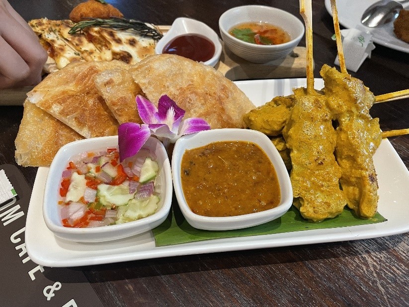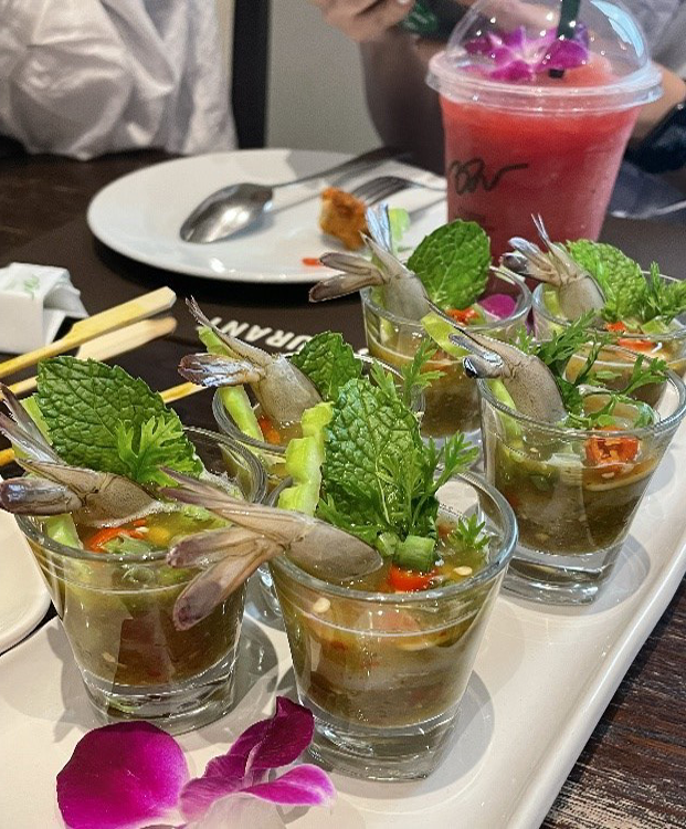 (왼쪽) 퀘사디아, 꼬치 (오른쪽) 각종 양념을 곁들인 생새우 컵. 출처=전채린님
