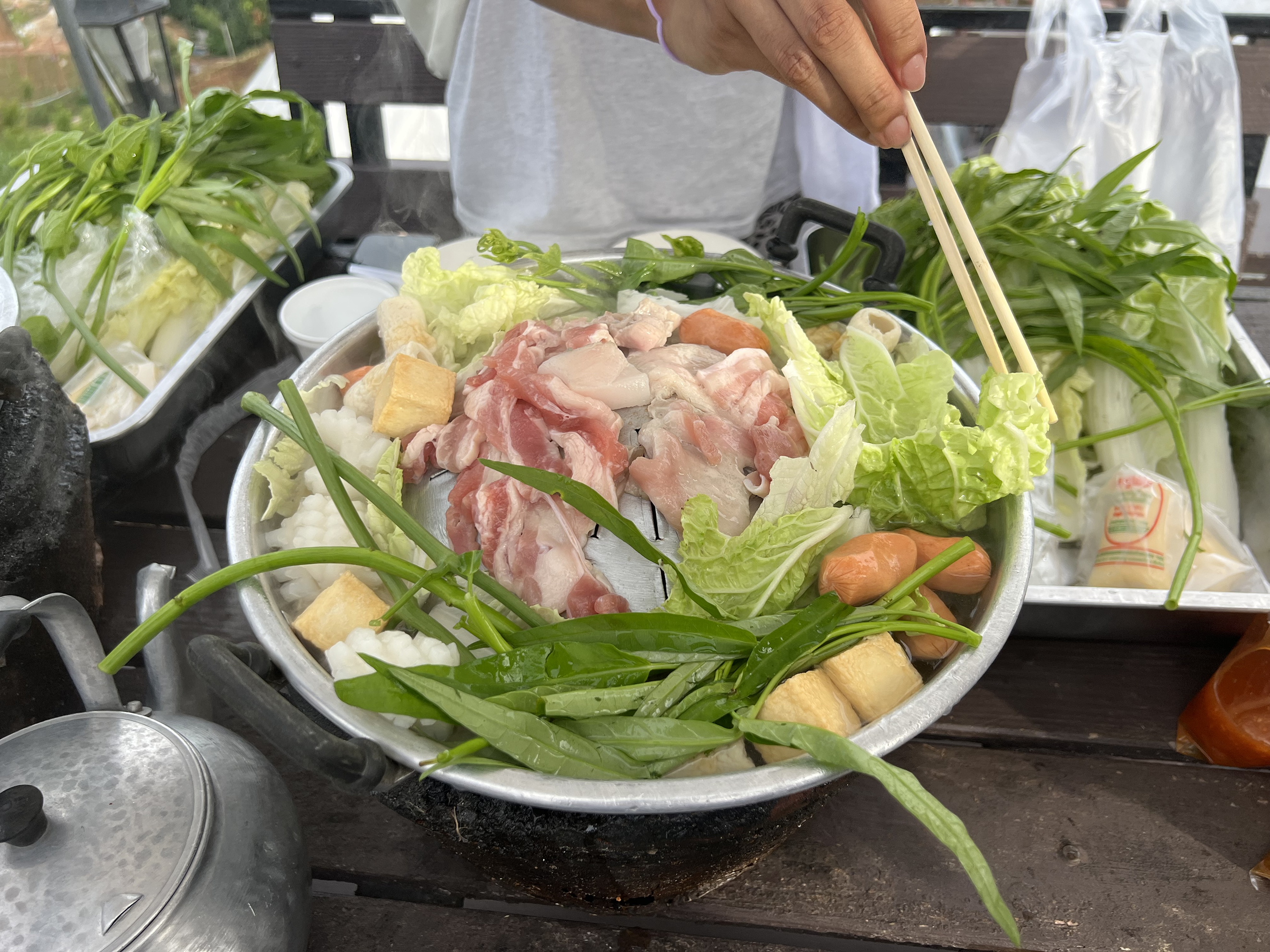 몬쨈 글램핑장에서 즐기는 태국식 샤브샤브 ‘무카타’. 출처=전채린님