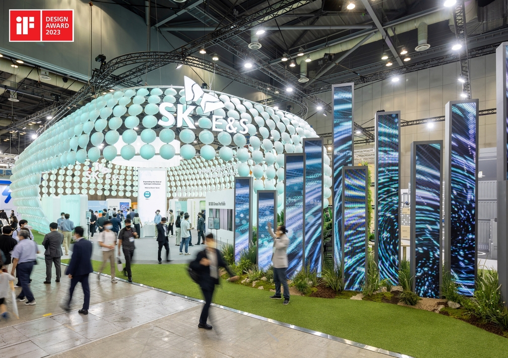 먼저 살펴볼 프로젝트는 CX3팀에서 진행한 [H2 MEET 2022 SK E&S 전시관] 프로젝트입니다. 산업 전시 체험공간의 임팩트 있는 비주얼로 전략적인 콘텐츠와 전시 체험 솔루션을 동시에 제공한 SK E&S 프로젝트를 기획해 세계 3대 디자인 어워드인 iF Design Award 수상하며 SM C&C의 저력을 유감없이 보여줬습니다.