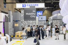 여기에 참가하는 회사 모두 수소, 수소 비즈니스를 이야기하고 시선을 끄는 결과물들을 내놓을 거잖아요. 저희 만의 매력도를 넣은 플러스 알파가 필요했어요. 그래서 전시 디자인에 '진정성'을 담았습니다. 업에 대한 아이덴티티를 전시관 안에도 다 연결시켜 녹아 내도록요. 수소 에너지 비즈니스가 친환경을 위해 변환하는 에너지 산업이라는 점, 여기에 착안을 했습니다.
