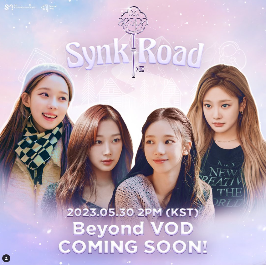 기존에 있던 시리즈의 연작으로 프로그램 제작 후작업에만(ex. 새로운 시즌 프로그램의 포스터 작업 등) 투입되는 차원이 아니라 이번 에스파의 <싱크로드>의 경우, 자막의 디자인도 CG도 처음부터 잡아가야 했기에 프로그램 기획단에서부터 디자인이 깊게 관여했던 작업이었습니다.