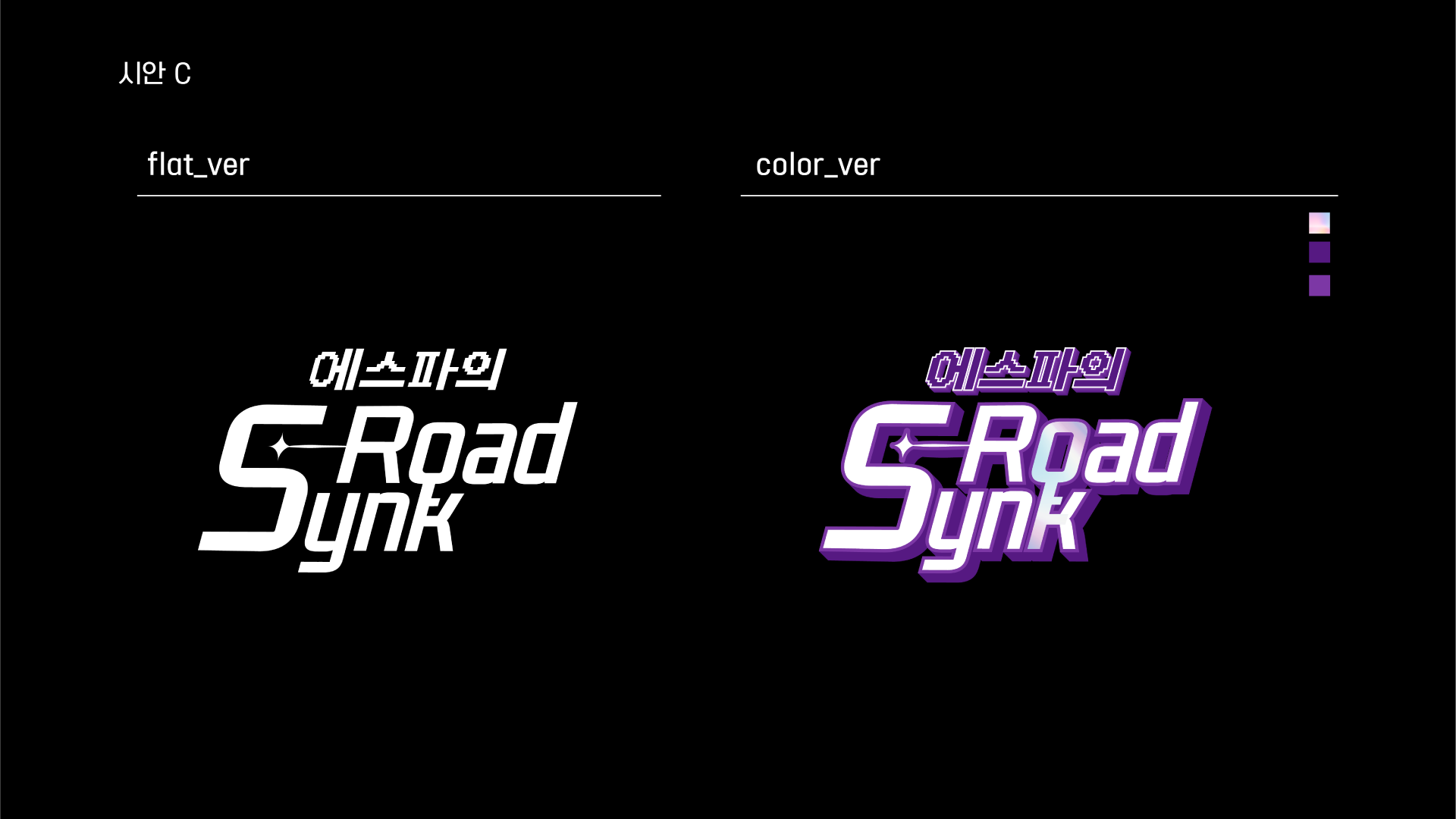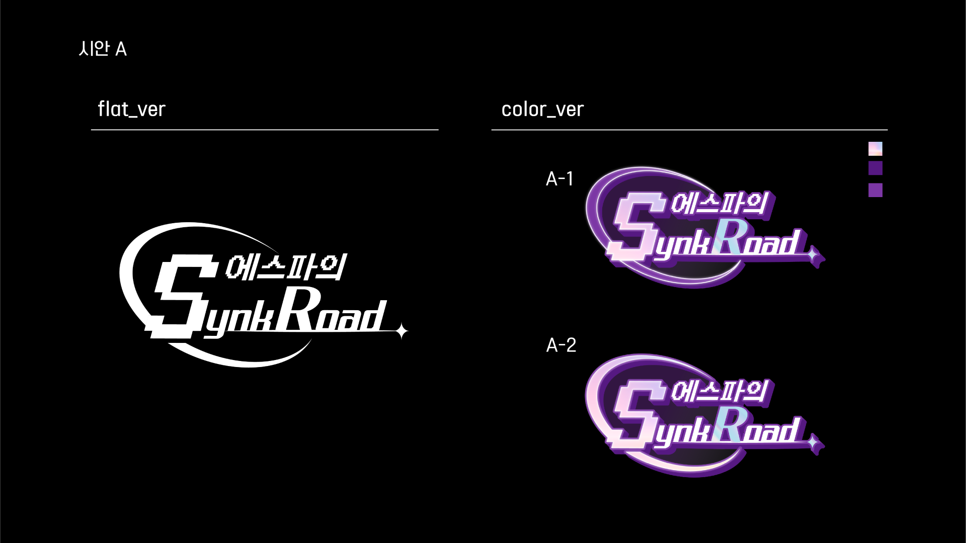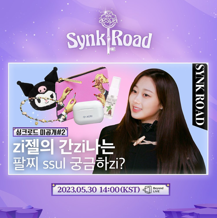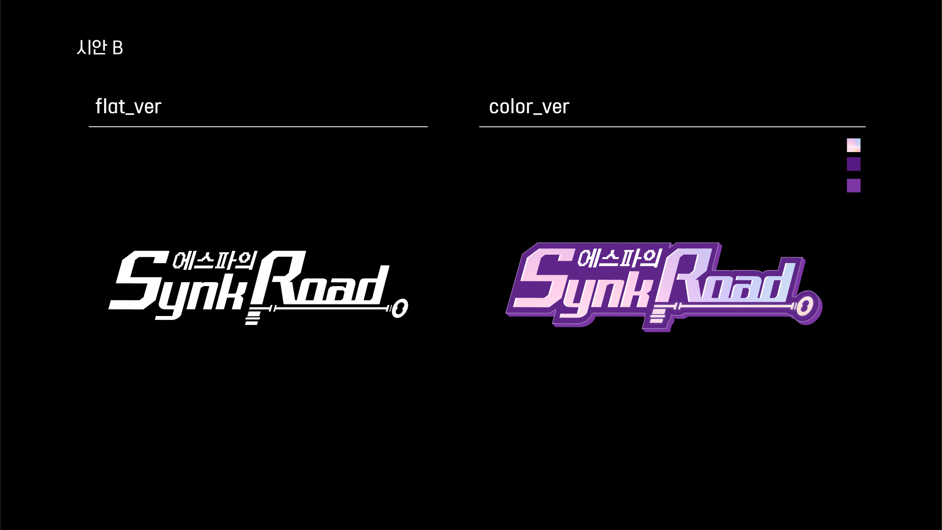 콘텐츠 사업 Unit에서의 작업들의 경우, 보통 리얼리티 장르인 경우가 많아서 아티스트 고유 컬러로 컨셉을 잡고는 합니다. 이번 에스파의 싱크로드는 리얼리티 프로그램이었습니다. 메인 컬러가 보라색으로 생각했는데, 마침 에스파라는 그룹의 고유 컬러이기도 하면서 ‘싱크로드’라는 제목의 신비한 느낌을 잘 살리는 것 같아 그 느낌을 고려해 컨셉 컬러로 잡았습니다.