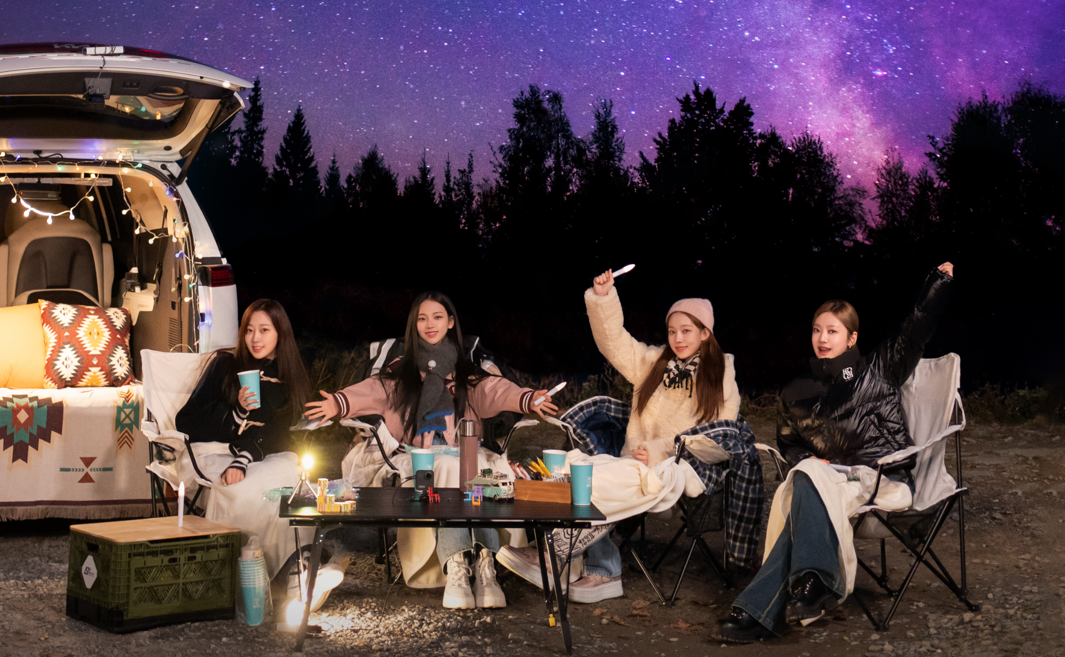 콘텐츠 사업 Unit에서의 작업들의 경우, 보통 리얼리티 장르인 경우가 많아서 아티스트 고유 컬러로 컨셉을 잡고는 합니다. 이번 에스파의 싱크로드는 리얼리티 프로그램이었습니다. 메인 컬러가 보라색으로 생각했는데, 마침 스파라는 그룹의 고유 컬러이기도 하면서 ‘싱크로드’라는 제목의 신비한 느낌을 잘 살리는 것 같아 그 느낌을 고려해 컨셉 컬러로 잡았습니다.