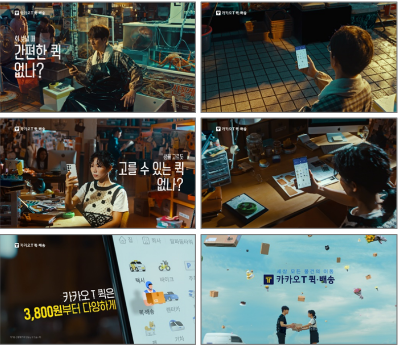 카카오 모빌리티의 카카오 T 퀵•배송 서비스가 신규 광고 캠페인을 시작했다. 이번 캠페인은 비즈니스의 용도로 퀵을 많이 사용하는 소상공인들을 공략하고자 했다. 매출관리에 고민이 많은 소상공인들의 니즈에 맞춰, 합리적이고 폭 넓은 선택이 가능한 가격대를 카카오T 퀵만의 차별적인 강점으로 전달하였다. 또 대중들이 이미 많이 사용하고 있는 카카오T 앱안에 카카오 T 퀵의 아이콘 위치를 활용하여 카카오 T 퀵의 존재감을 보여주었다. 특히, 뜨거운 사랑을 받았던 그룹 EXID의 대표곡 <위아래> 를 개사한 CM송을 통해 심플하지만 임팩트있게 대중들의 주목을 끌었다.