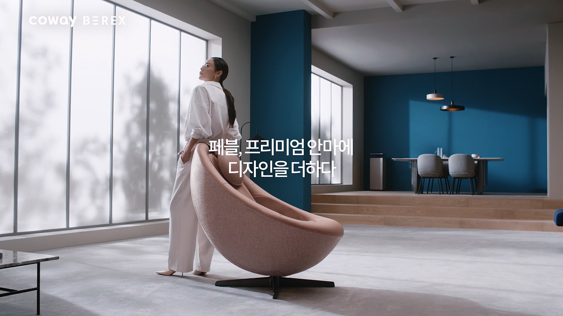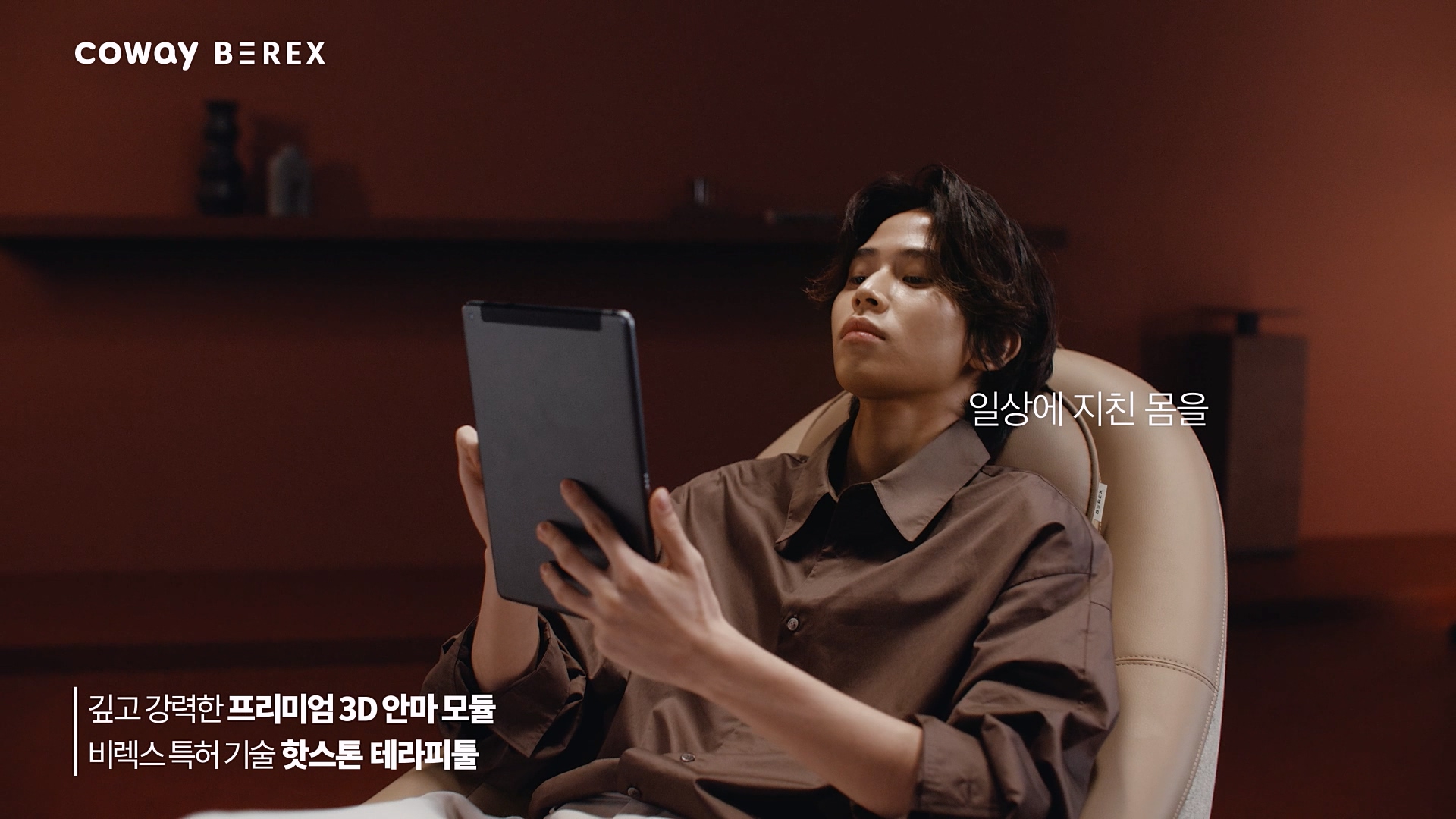 ▲ 코웨이 비렉스, '코웨이 비렉스 페블' 런칭 캠페인 안마의자를 넘어 릴랙스체어 페블 편