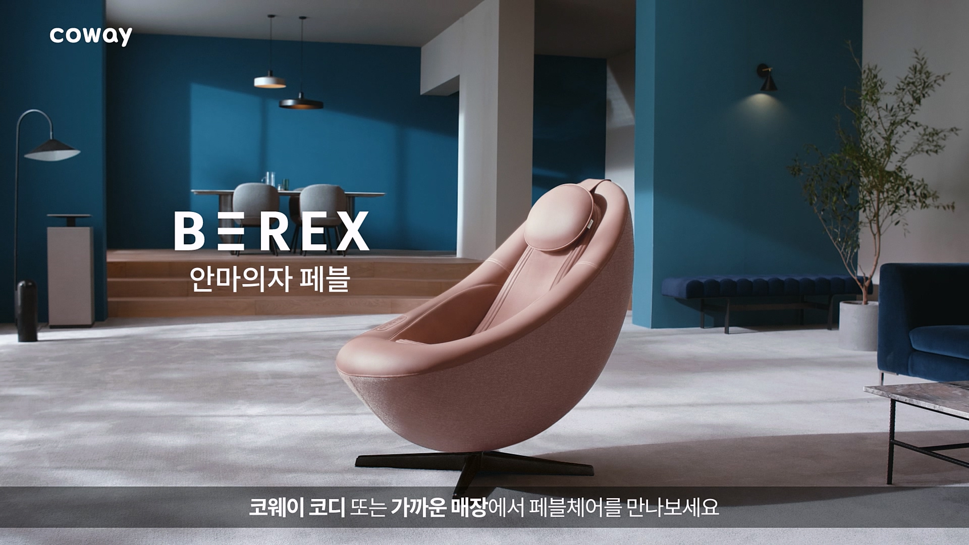 코웨이의 라이프 스타일 브랜드 '비렉스(BEREX)'의 페블체어 런칭 캠페인이 온에어 되었다. '안마의자'라면 으레 무겁고 공간을 차지한다는 편견을 깨고, 차분하고 우아한 분위기의 톤앤매너와 함께, 감각적인 디자인을 강조한 프리미엄 디자인 체어를 효과적으로 소구했다. 또 감각적 디자인에 더해 강력한 3D 안마기능은 물론, 더욱 깊은 릴랙스 경험을 제공해 주는 블루투스, 리클라이닝 기능까지 디자인과 성능 모두를 만족하는 제품력을 담았다.