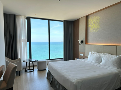 가장 먼저, 오션뷰 가성비 호텔로 나바다 비치 호텔을 추천합니다. 153개 객실을 보유한 총 22층 규모의 호텔로, 깜라인 공항까지 차로 약 58분, 시내까지는 약 10분 거리에 위치합니다.