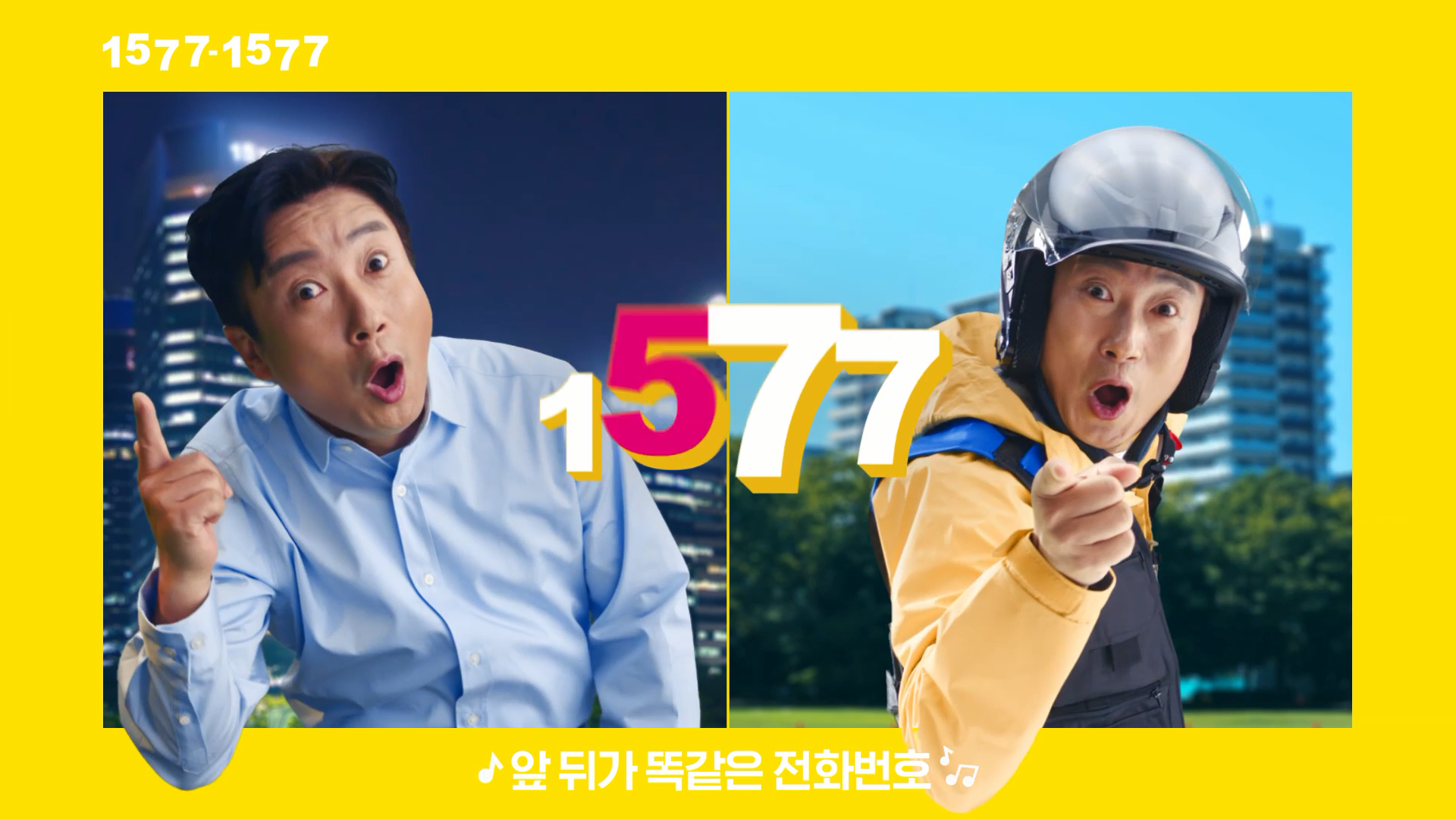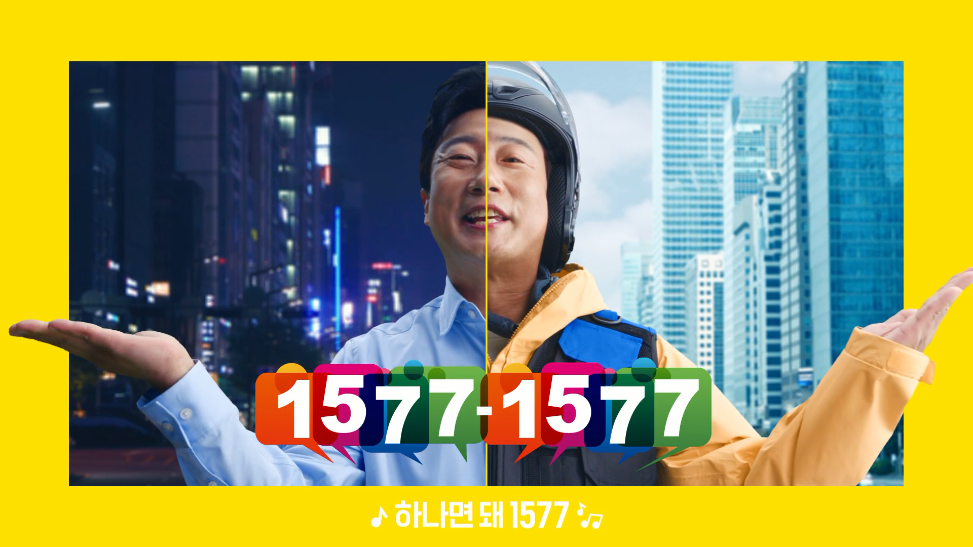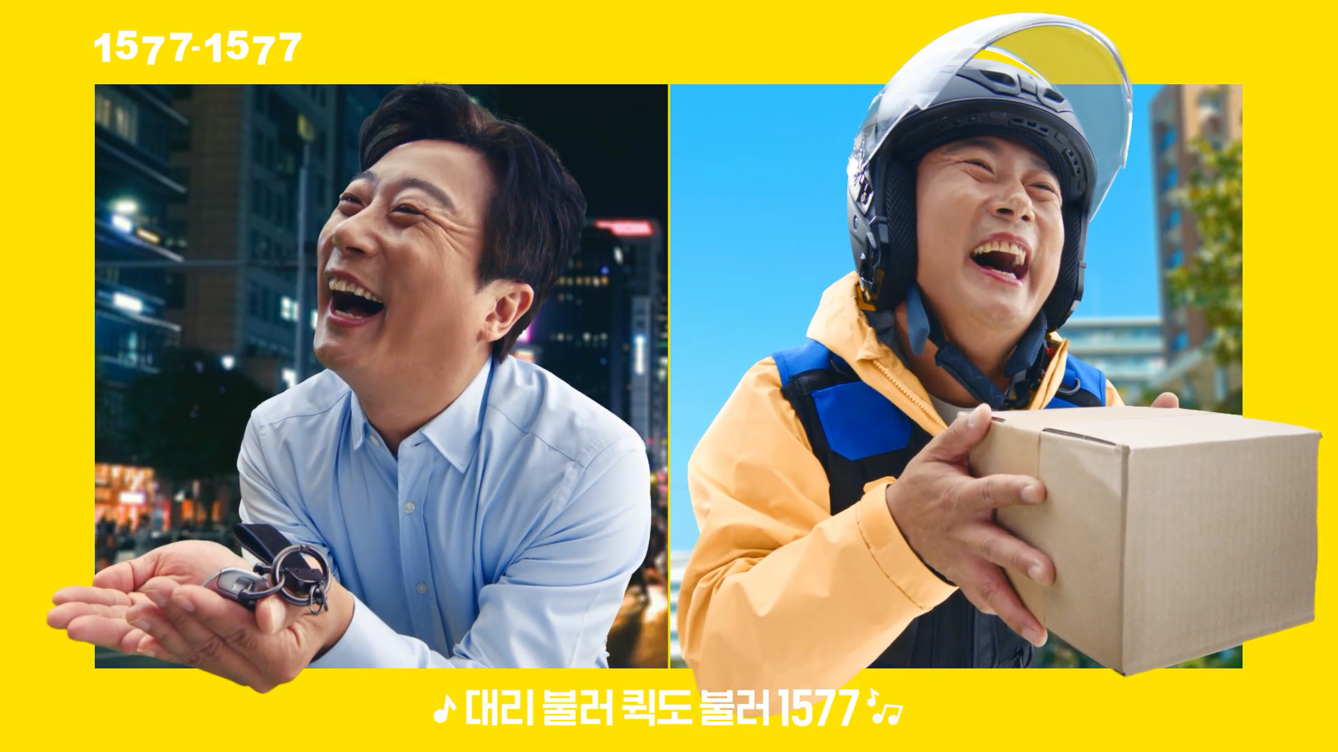전국민이 알고 있는 앞뒤가 똑같은 그 번호 ‘1577-1577’으로 대리운전 뿐만 아니라 퀵 서비스도 이용 가능하다는 점을 알리기 위한 캠페인이 공개됐다. 1577의 대표성을 가진 '1577 송'을 퀵+대리 버전으로 개사하는 한편, 시각적으로는 화면 분할 형식을 적극 활용하여 낮에도 밤에도 1577 번호 하나로 모두 가능하다는 점을 모델 이수근 특유의 즐거운 분위기를 통해 전달하고자 했다.