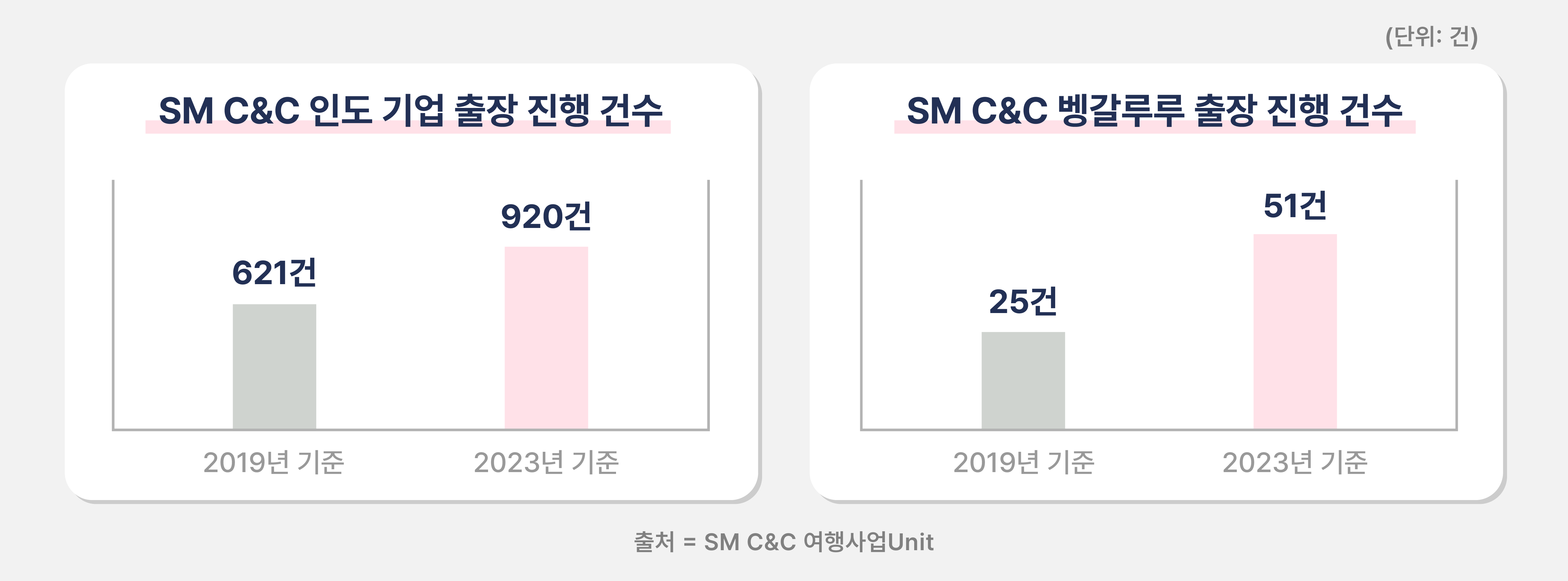별도 요청 시 현지 차량 및 가이드부터 투어 일정까지 구성, 맞춤형 서비스도 제공합니다. 특히 델리, 뭄바이 등 주요 출장지 외에도 콜카타, 아메다바드, 하이데라바드 등 현지 인프라가 비교적 미흡한 지역에서의 서비스도 SM C&C 현지 파트너사를 통해 안전하게 진행합니다.