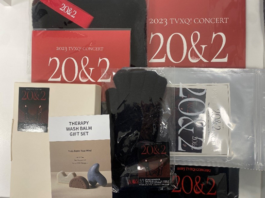 그 어느 때보다 풍성한 글로벌 패키지 기념품은 손님들에게 감동을 줬습니다. 계절을 고려한 실용적인 장갑과 목도리 세트가 특히 인상적이었죠. 동방신기 로고가 새겨진 기념품 덕분에 이번 행사를 오래 기억할 수 있게 됐습니다. 디럭스 및 슈페리어 손님들은 퍼 소재의 파우치와 아티스트의 메시지 카드 및 팬레터 키트도 받을 수 있었습니다.