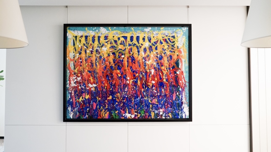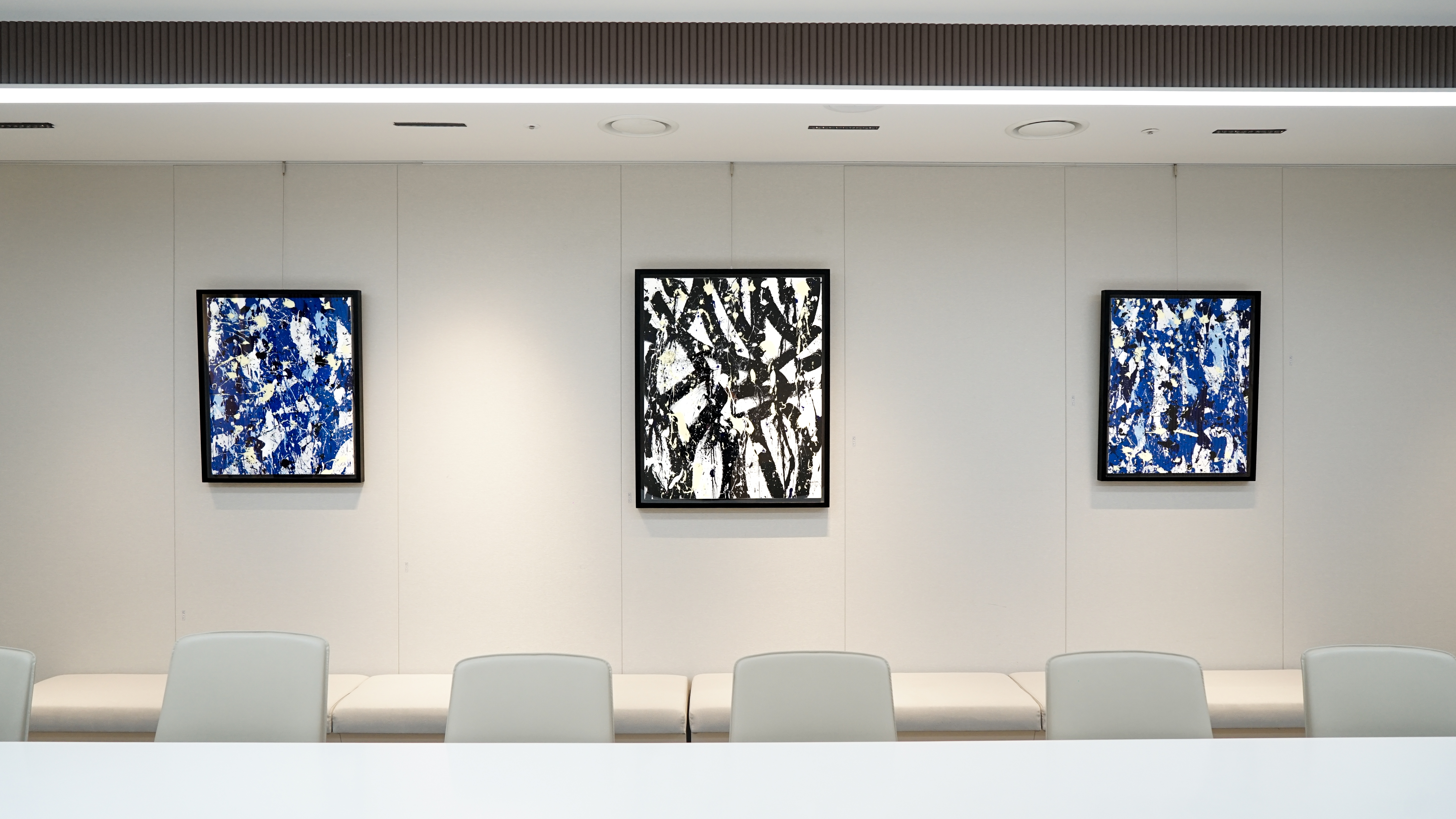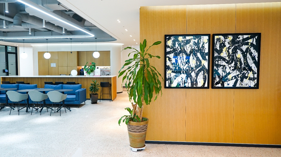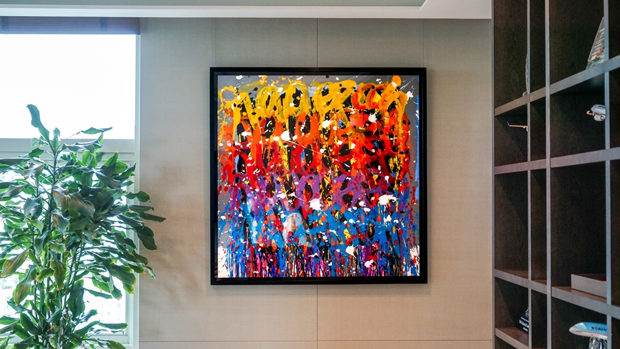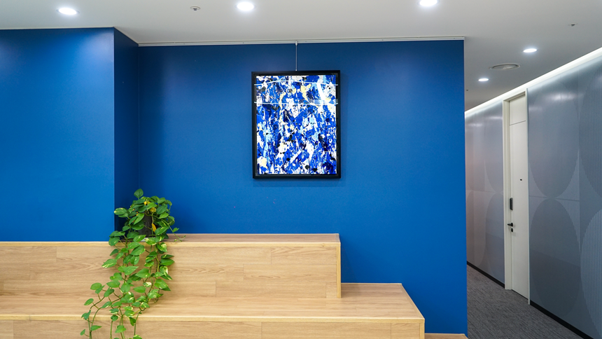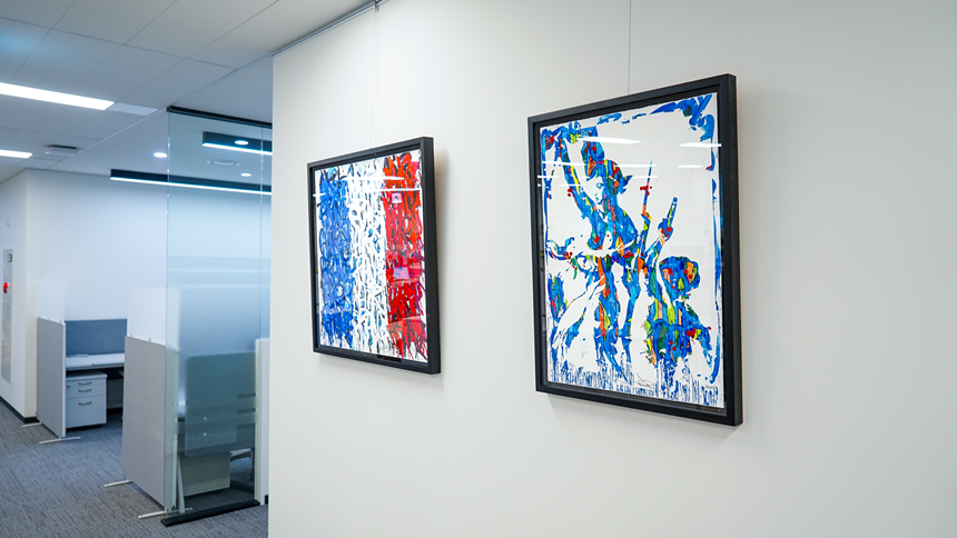 이번 사내 전시에서는 존원의 최근작은 물론, 시그니처 태그와 색감을 느낄 수 있는 작품들을 만나볼 수 있습니다. 특히 Air France Forever는 존원이 2015년 프랑스 항공사 에어프랑스의 창립 80주년을 기념해 Boeing 777 기종에 새긴 리토그라피(Lithograph, 석판 인쇄)입니다. 같은 해 프랑스 예술 시리즈 우표에 작업한 Liberté Égalité Fraternité 2024년 리토그라피도 SM C&C 사무실에 걸렸습니다. 선의 경계를 넘나드는 존원의 색채와 거침없는 터치감. 그의 작품은 창작을 위해 때로 각자의 규범을 무너뜨리는 대담함과 모험심이 필요하다는 것을 보여줍니다.