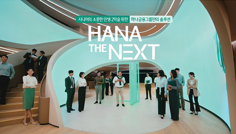 하나금융그룹이 <하나 더 넥스트(HANA THE NEXT)> 캠페인을 공개했습니다. 하나 더 넥스트는 그룹 계열사와의 협업을 통해 은퇴 설계부터 상속 및 증여, 건강관리 등 금융·비금융 서비스를 제공하는 시니어 특화 브랜드입니다. 이번 캠페인은 브랜드 출범에 맞게 인지도 및 신뢰 제고를 목표로 전개됐습니다.