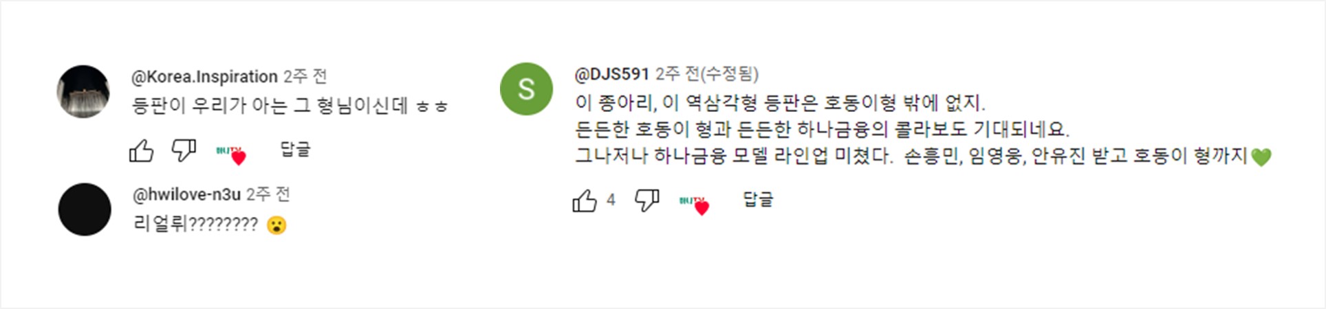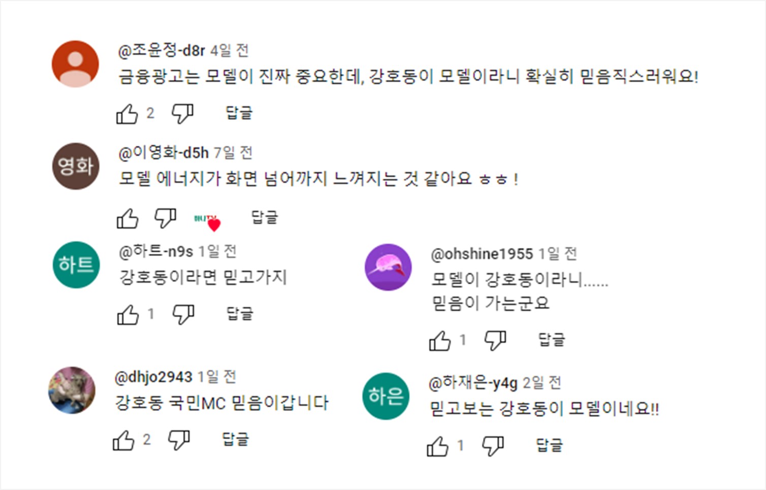 캠페인 온에어 전에 10초짜리 티징 영상을 선공개했습니다. 하나금융그룹의 신규 광고모델에 대한 궁금증을 모으기 위함이었는데요. 많은 이들이 종아리 실루엣만으로 광고모델을 강호동으로 특정하며 반향을 일으켰습니다.