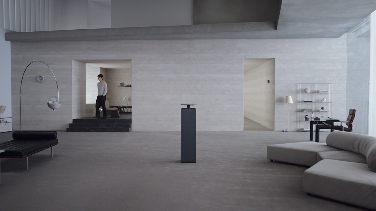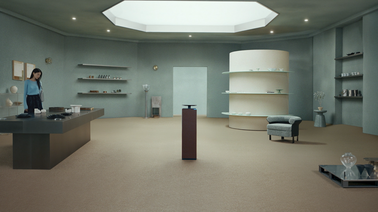토지, 건물 등의 넓이를 나타내는 계량 단위가 제곱미터(㎡)인데, 아직도 많은 사람이 평(평수)을 더 익숙하게 생각합니다. 하지만 광고에서 사용할 수 없는 단위이기 때문에 ‘133㎡ 청정 능력’을 직관적으로 보여줄 수 있는 넓은 공간을 만들어야 했습니다. 마냥 넓기만 하면 카메라에 담았을 때 오히려 공간감이 느껴지지 않는 문제도 있었습니다. 이를 위해 보다 디테일한 연출이 필요했죠. 또 ‘라인업 편’에서는 다양한 사이즈에 최적화된 제품 라인업을 보여줘야 했기 때문에 공간이 특히 많이 필요했습니다. 이 공간들이 전부 다른 사이즈라는 것을 소비자에게 인지시켜야 하는 과제가 있었죠.