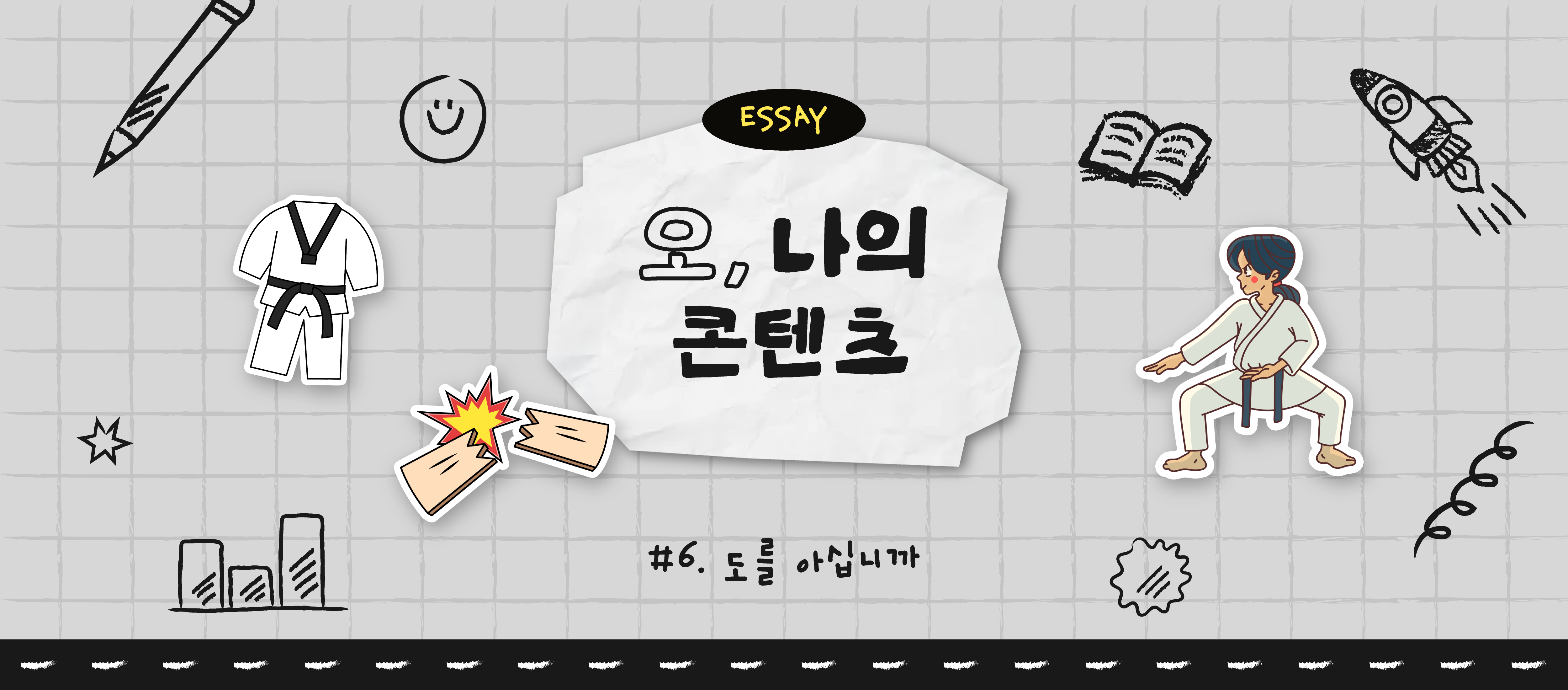 사람들이 취미가 뭐냐고 물을 때 태권도라고 답하는 것은 꽤 흥미로운 답변이다. 대개 조소를 띄며 “무슨 띠세요?”라고 되묻는데, 이는 태권도가 한국 사람들에게 얼마나 밀접한 운동인지를 알게 하는 대목이다. 하지만 어렸을 때 운동 학원(?)에 다녀보지 않은 나에게 태권도라는 운동은 성인이 배우는 기타 종목 대비 특별히 매력적인 운동이라고 자부할 수 있다.