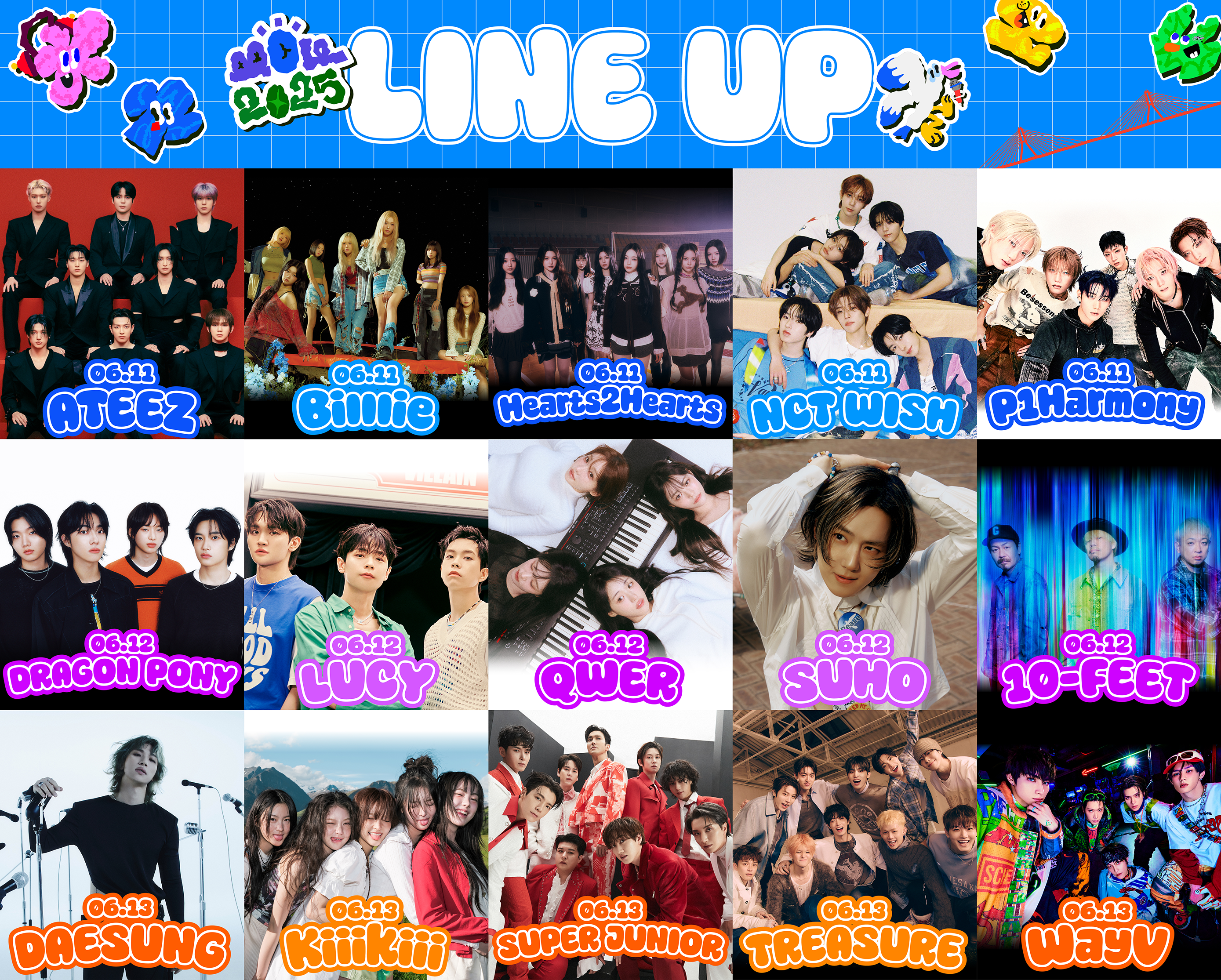 - 오는 6월 11일부터 13일까지 부산 벡스코 제1전시장에서 2025 BOF BIG&BAND 콘서트 최종 라인업 공개··· 수호(SUHO), 텐피트(10-FEET)부터 키키(KiIiKiIi), 피원하모니(P1Harmony)까지 합류해 기대감 고조