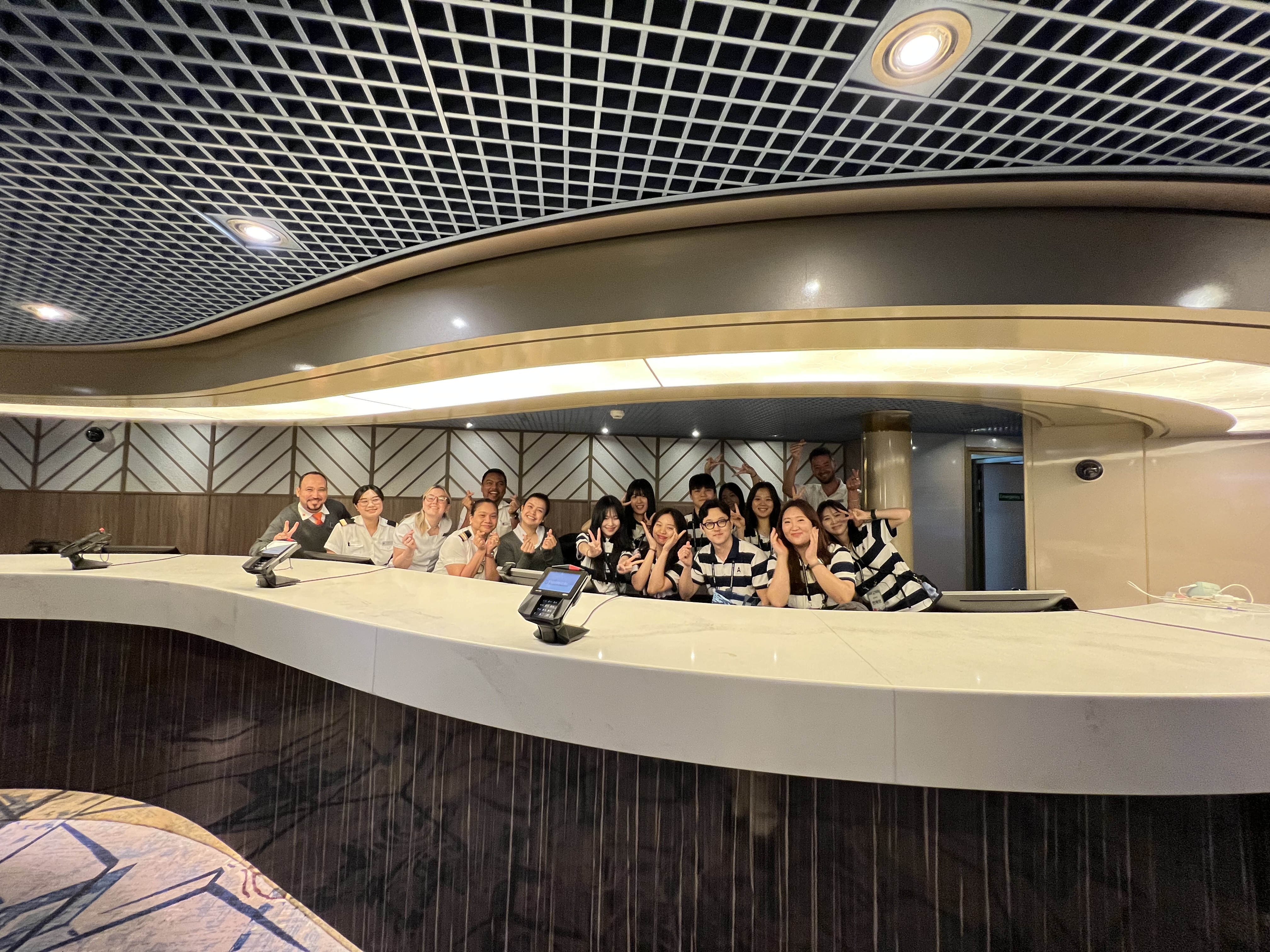 전채린 이번 크루즈 행사는 (단순한 인센티브 투어가 아닌) 하나의 호텔을 직접 운영한 것에 가까웠어요. 보통은 (투어 거점 숙소에 해당하는) 호텔 내에 고객사의 투어 참가자들을 위한 별도의 안내데스크를 설치해 운영하지만, 이번에는 크루즈 내 안내데스크에 팀원들과 서포터즈가 직접 배치돼 운영했죠. 또 크루즈 내에는 기본적으로 영문 브리핑만이 제공되는데, 국내 고객사 투어 참가자분들만을 위한 행사잖아요. 별도로 식사 메뉴판부터 데일리 프로그램 설명서, 크루즈 선사에서 매일 제공하는 안내문 하나까지 매일 번역해 드렸어요.
