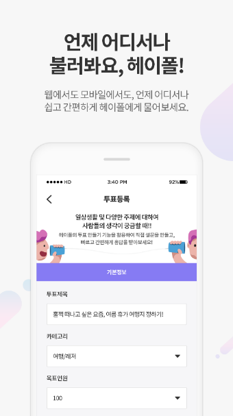 ▲ 궁금해? 물어봐! 헤이폴(heypoll) 모바일앱 페이지