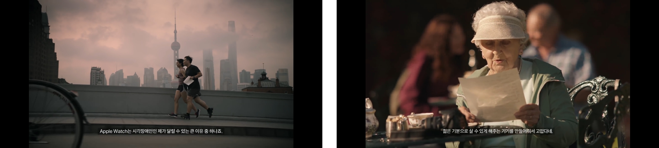 여러 편의 애플워치 광고 중 가장 애정하는 편이 있는데 바로 ‘Dear Apple(Apple에게)’이다. 광고는 편지 형식으로 진행되는데, 다양한 연령층과 직업을 갖고 있는 사람들이 애플워치를 만나며 달라진 더 나은 삶의 변화에 대해 감사한 마음을 담아 쓴 편지를 나레이션 형식으로 진솔하게 얘기한다. 매일 활동링을 채우기 위해 노력하고, 애플워치가 일어나라고 하면 일어서는 내 모습과 애플워치를 만나기 전 건강하지 못했던 과거의 내가 오버랩 되며 광고 자체가 내 얘기 인 듯 모두 와 닿았다.
