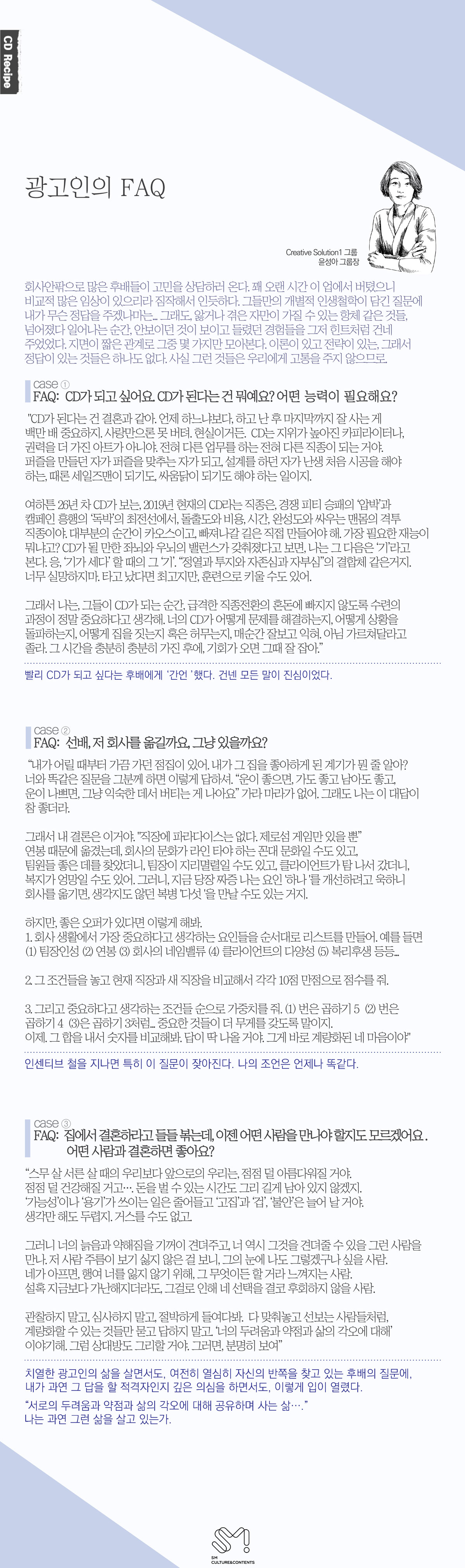 | [CD Recipe] 1년차 카피라이터 방윤수에게 보내는 잔소리 (0) | 2019.10.11 |