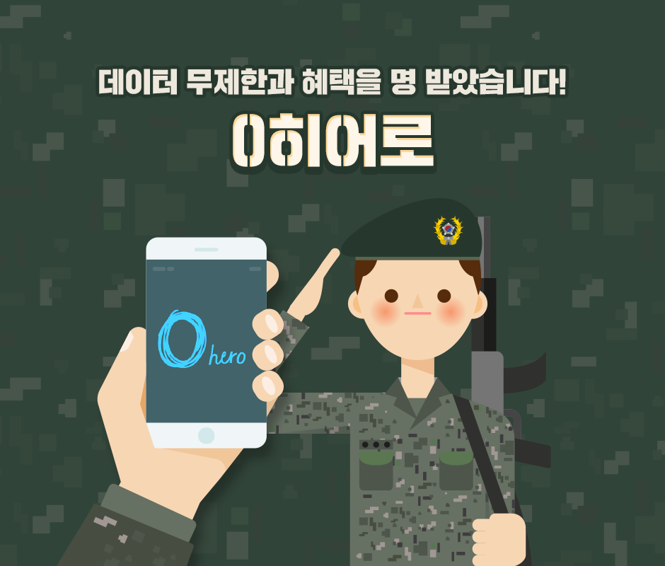 “군인도 할 수 있습니다!” 대한민국 국군장병의 복지증진을 위해 ‘국방개혁 2.0’ 이 시행되었고 그 일환으로 ‘일과 후 군장병 휴대전화 사용’이 시행되었습니다. SK 텔레콤은 이러한 제도적, 시기적 흐름에 맞춰 국군 장병들이 휴대전화를 보다 유용하게 사용할 수 있도록, 전용 요금제 및 혜택인 ‘0히어로’ 서비스를 론칭하였습니다.