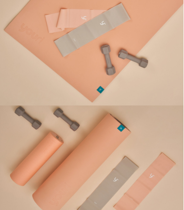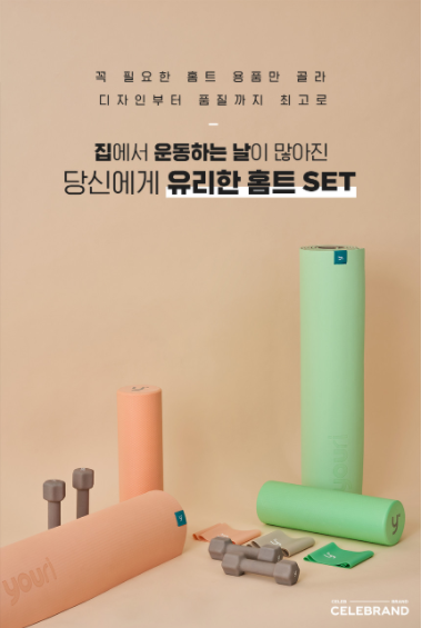 첫 번째로 만나 볼 제품은 <유리한 홈트>입니다. 이 제품들은 소녀시대 유리와 30년 노하우를 갖춘 헬스용품 전문가 집단, 아이돌 트레이닝 전문가들이 엄선한 최적의 4종으로 구성되었습니다. 모든 운동의 기본이 되는 홈트매트와 다양한 근력운동이 가능한 1kg 덤벨 세트, 가벼운 운동과 강도 있는 운동에 도움이 되는 상하체 활용 가능한 루프밴드 그리고 홈트의 마무리, 마사지를 위한 미니 폼롤러까지.