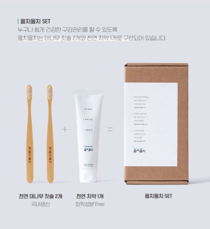 [옳치옳치SET]슈퍼주니어 청결덕 김희철과 치과의사가 함께 만든 대나무칫솔과 천연치약 세트, 출시기념 3가지 추가혜택 증정