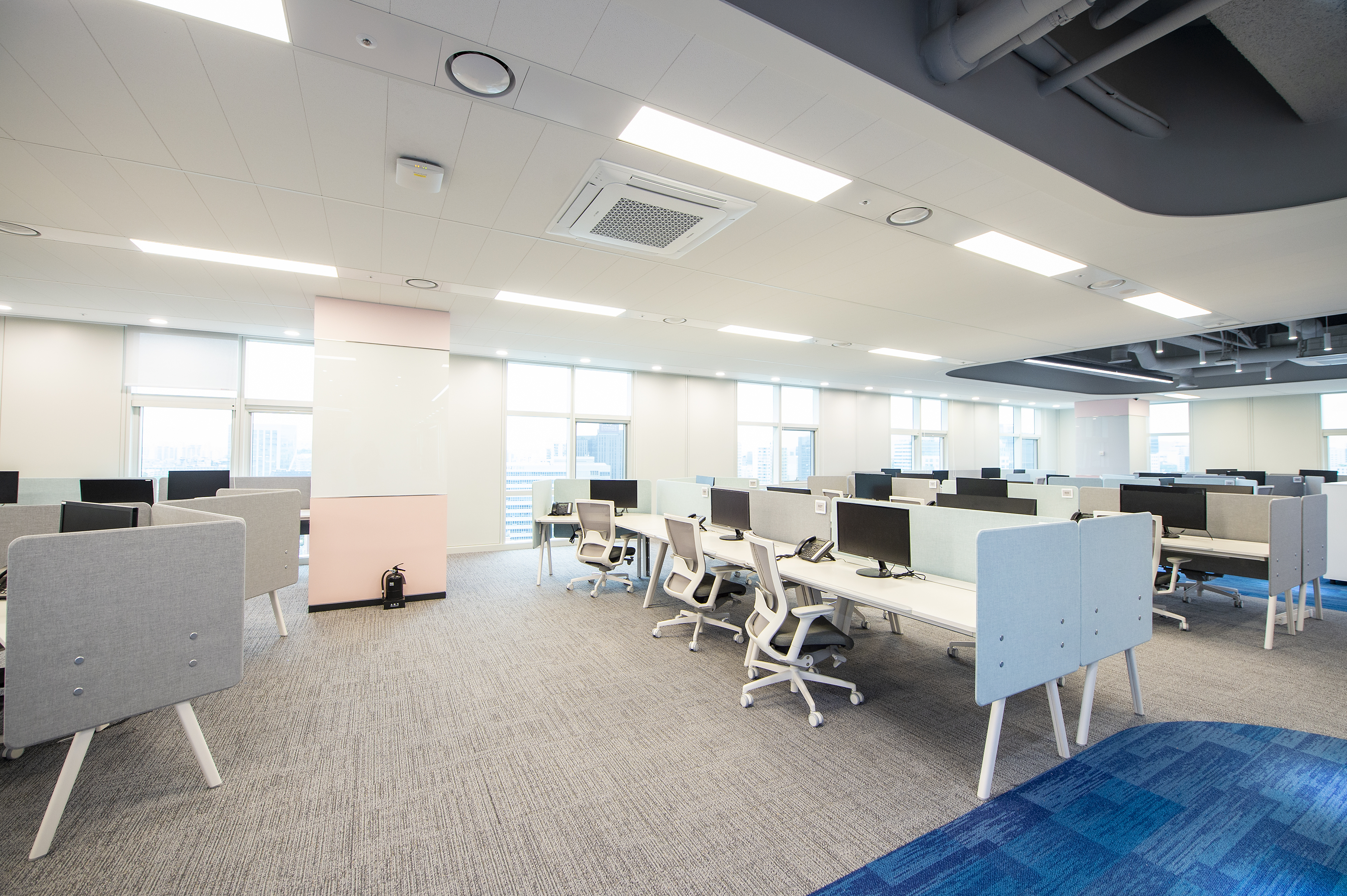 SM C&C에게 이번 성수 사옥으로의 이전이 또 하나의 변화를 도모하는 의미도 있습니다. SM C&C가 신사옥으로 편입되며 혁신적인 회사들의 전유물로만 생각되던 스마트오피스(Smart Office) 전격 도입한 것이 바로 그것인데요. 지난해 코로나를 겪으며 전 세계적으로 많은 회사들이 사무실에서 일하는 전통적인 근무 방식을 벗어났습니다. 직장인들 다수가 이를 계기로 스마트 워킹을 학습한 만큼 스마트오피스로의 변화가 궁극적으로 구성원들과 기업 모두에게 시간과 공간의 유연함을 보장하는 방향으로 개선될 수 있을 것이라는 생각을 갖게 되었던 것이 사실인데요. SM C&C는 이러한 변화에 대한 생각을 단지 생각에만 머무르지 않고 이를 선도적으로 도입하게 되었습니다.