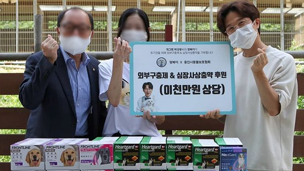 박성광은 반려견 '광복이'의 아빠로서 유기견 봉사활동에 진심을 다해왔습니다. 힘들었던 시기에 반려견 광복이를 만나 어려움을 극복할 수 있었다는 박성광은 광복이로부터 받은 긍정의 에너지를 여러 선행 활동을 통해 아낌없이 나누고 있습니다. 꾸준히 유기견 봉사활동에 참여하는 것은 물론, 지난 8월 5일에는 광복이가 찍은 한 광고의 모델료를 용인시 동물보호협회에 모두 기부하며 '찐 애견인'의 행보를 보여주기도 했습니다. 그는 "현재 유기견들에게 가장 필요한 것이 외부구충제, 심장사상충약이었다"며 2000만원 상당의 물품을 기부했습니다.