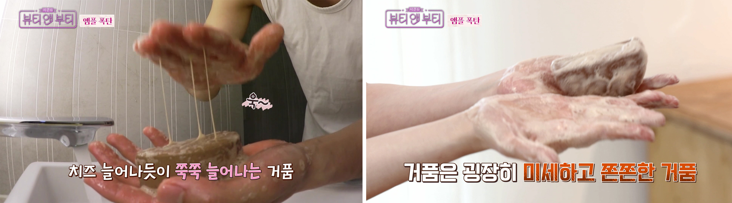 그중에서도 MC들에게 가장 큰 관심을 받았던 부분은 바로 조금만 사용해봐도 알 수 있는 '쫀득한 거품' 이었답니다.