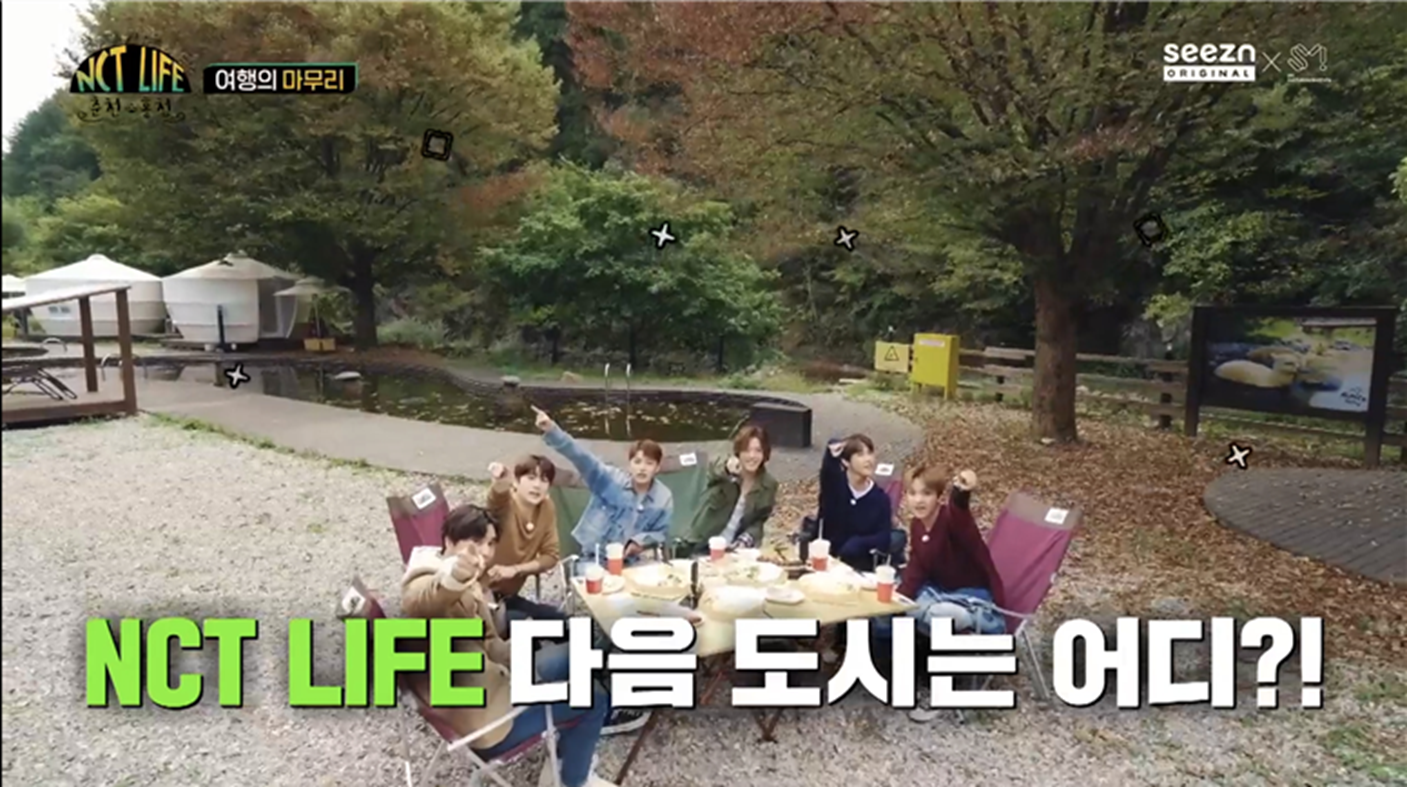 A. 그동안 <NCT LIFE in 가평>을 시청해 주셔서 감사합니다. 부족한 실력이지만 부문장님 이하 선배님들, 그리고 잘 따라와준 팀원들 덕분에 끝까지 마무리할 수 있었습니다. <NCT LIFE>는 한 시즌이 끝날 때마다 "다음 도시는 어디~?"라는 멘트로 끝나는데요. 빨리 시국이 좋아져서 NCT가 여행할 수 있는 도시의 범위가 넓어졌으면 하는 바람이 있습니다.