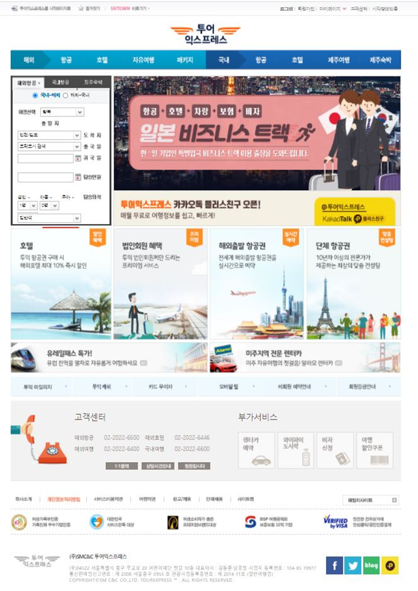 투어익스프레스는 국내/해외 온라인 항공권, 전 세계 주요 도시의 호텔, 개별 자유여행의 맞춤 여행 서비스를 제공하며 고객 만족 서비스를 제공하는 인터넷 여행사입니다.