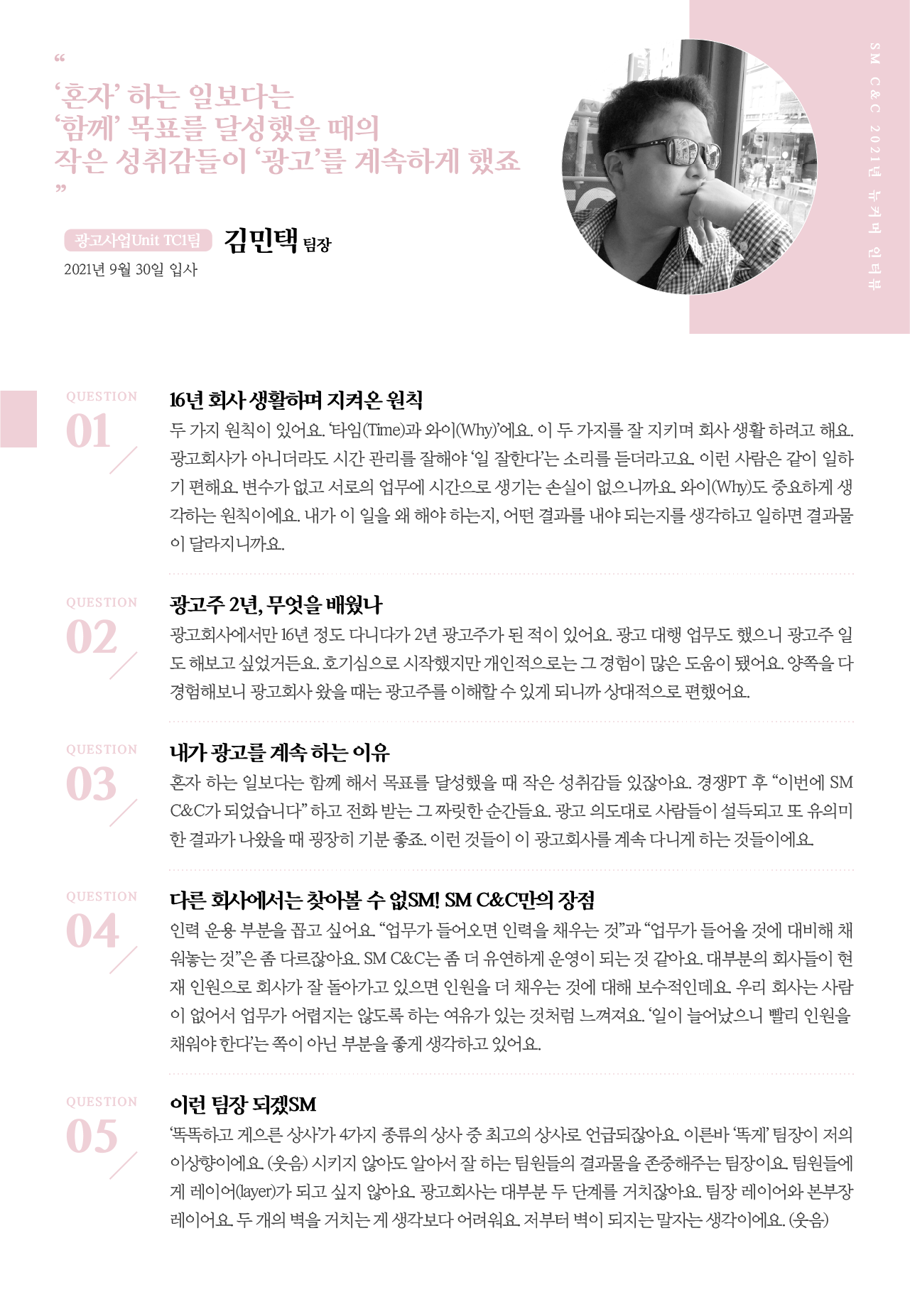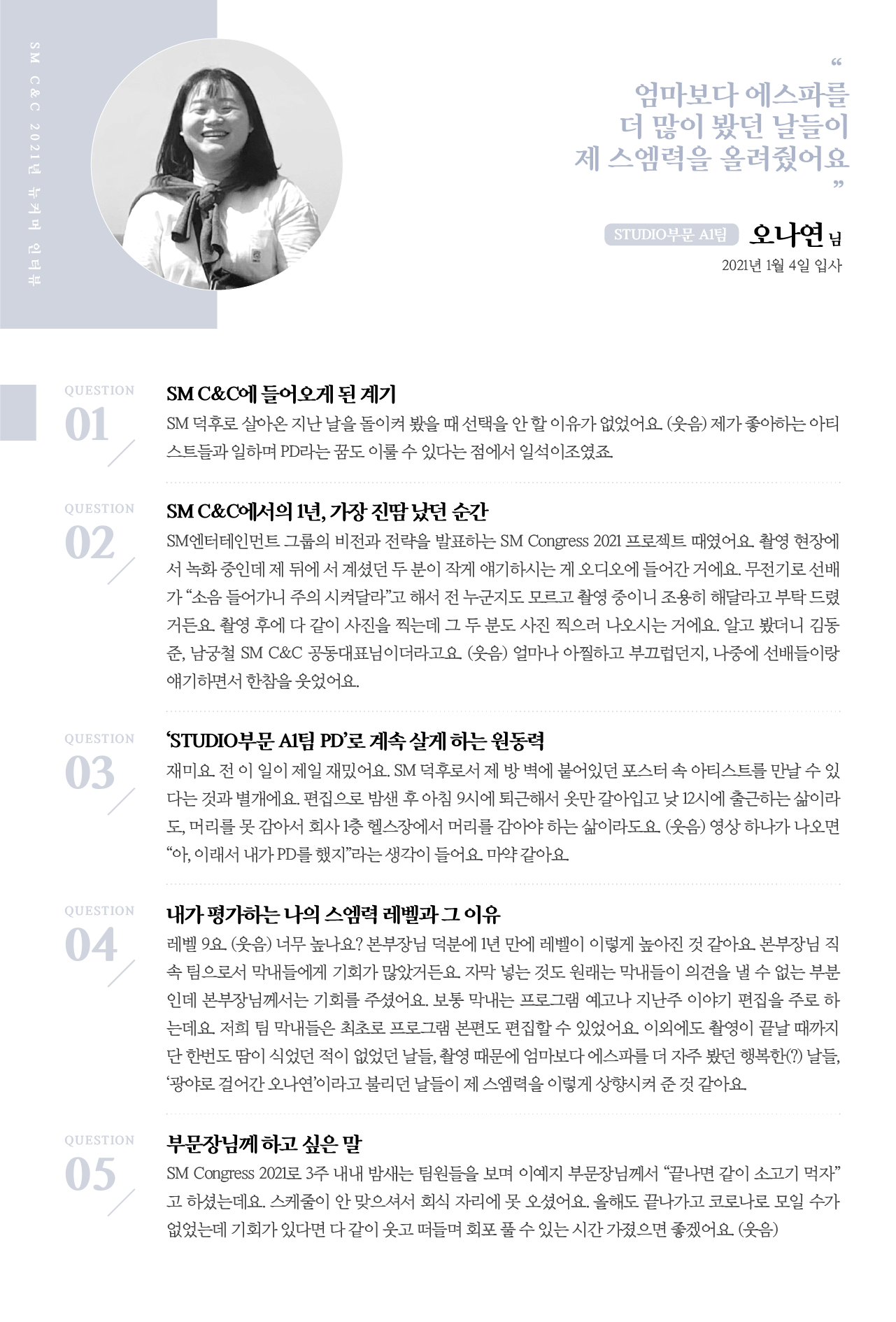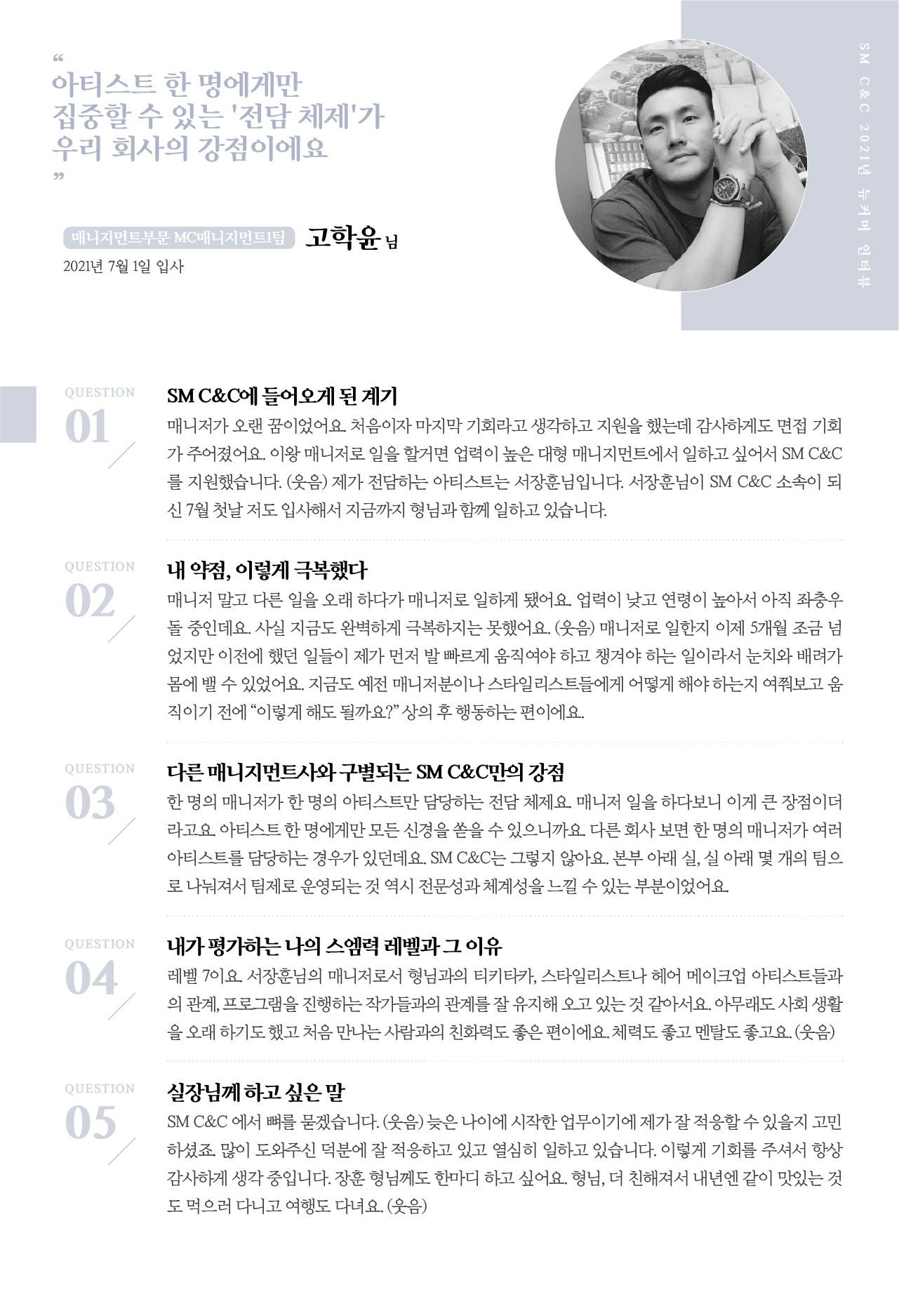 2021년 SM C&C의 일원이 된 뉴 커머(New Comer)들을 통해서요!