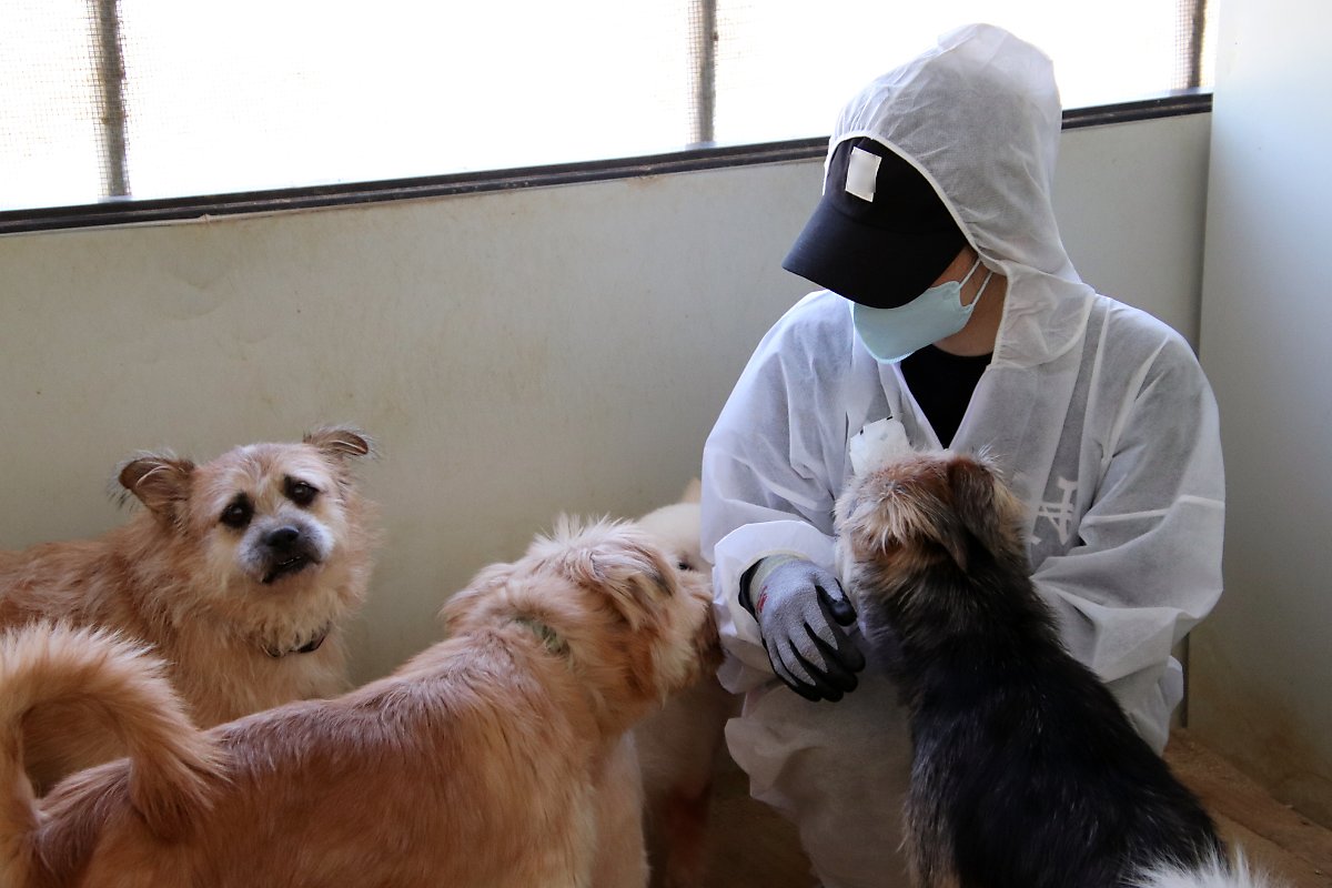 유기견 보호소 봉사활동에 참여한 김민아. 출처=SM C&C
