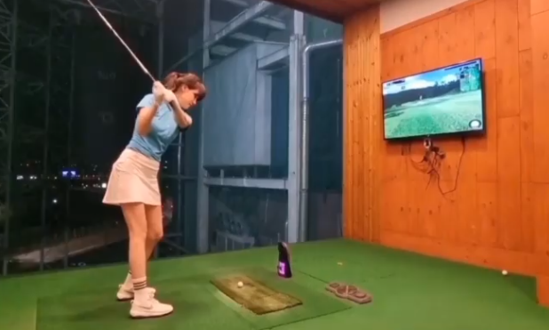 골프 연습 중인 김민아. 출처=김민아 SNS