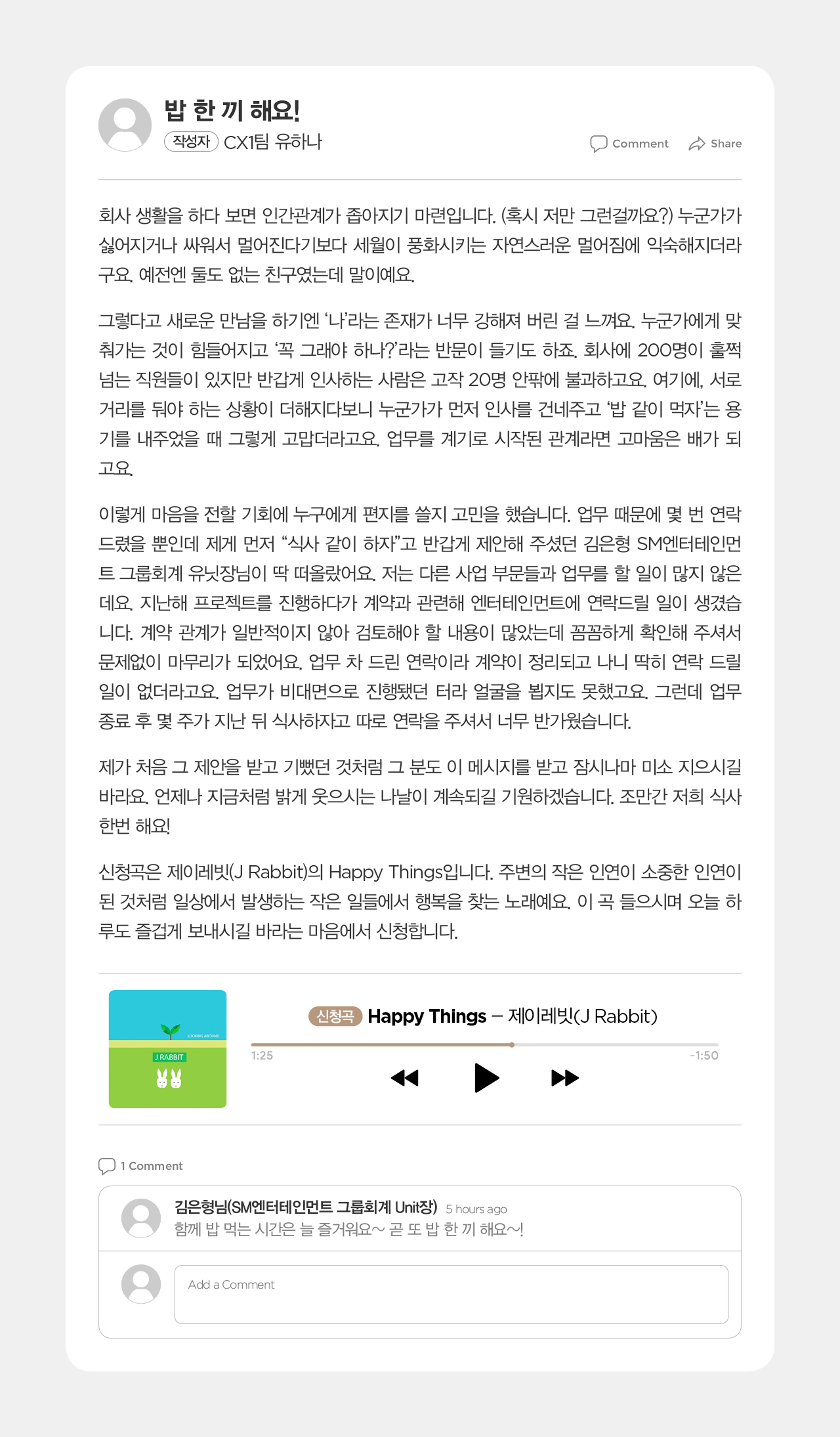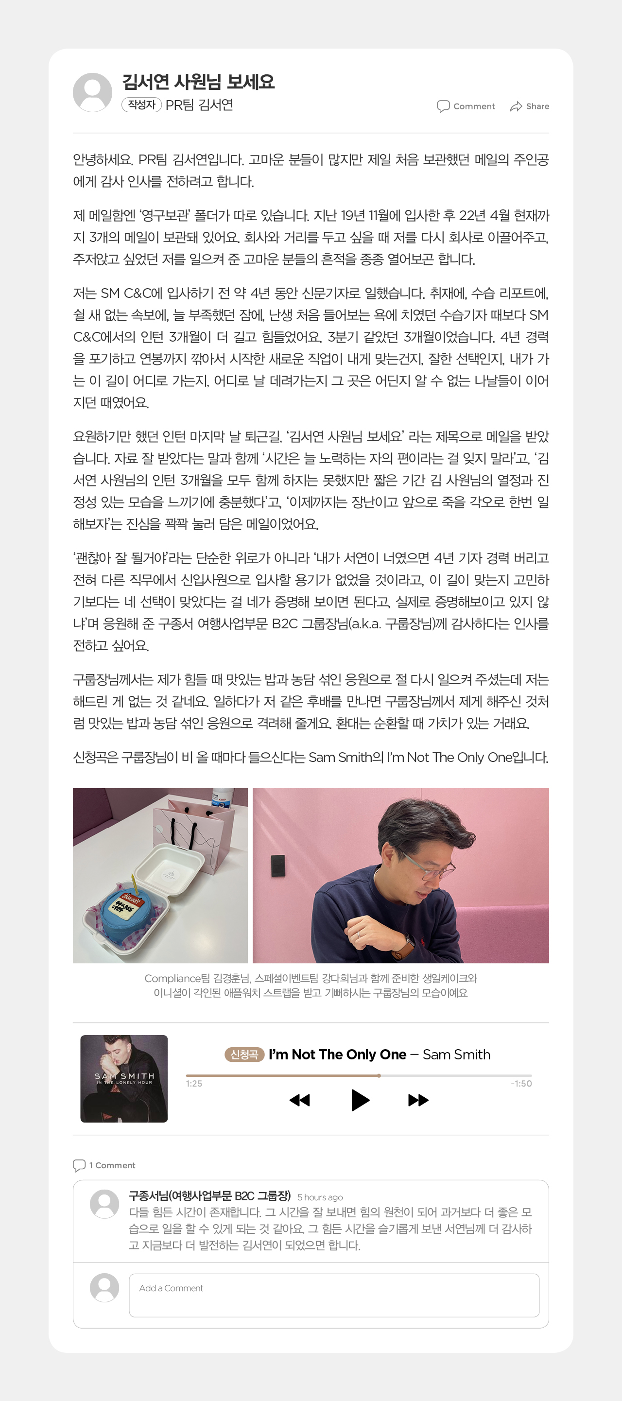 | 2022년 1분기 우수사원 이야기 들어보겠SM? (0) | 2022.05.09 |