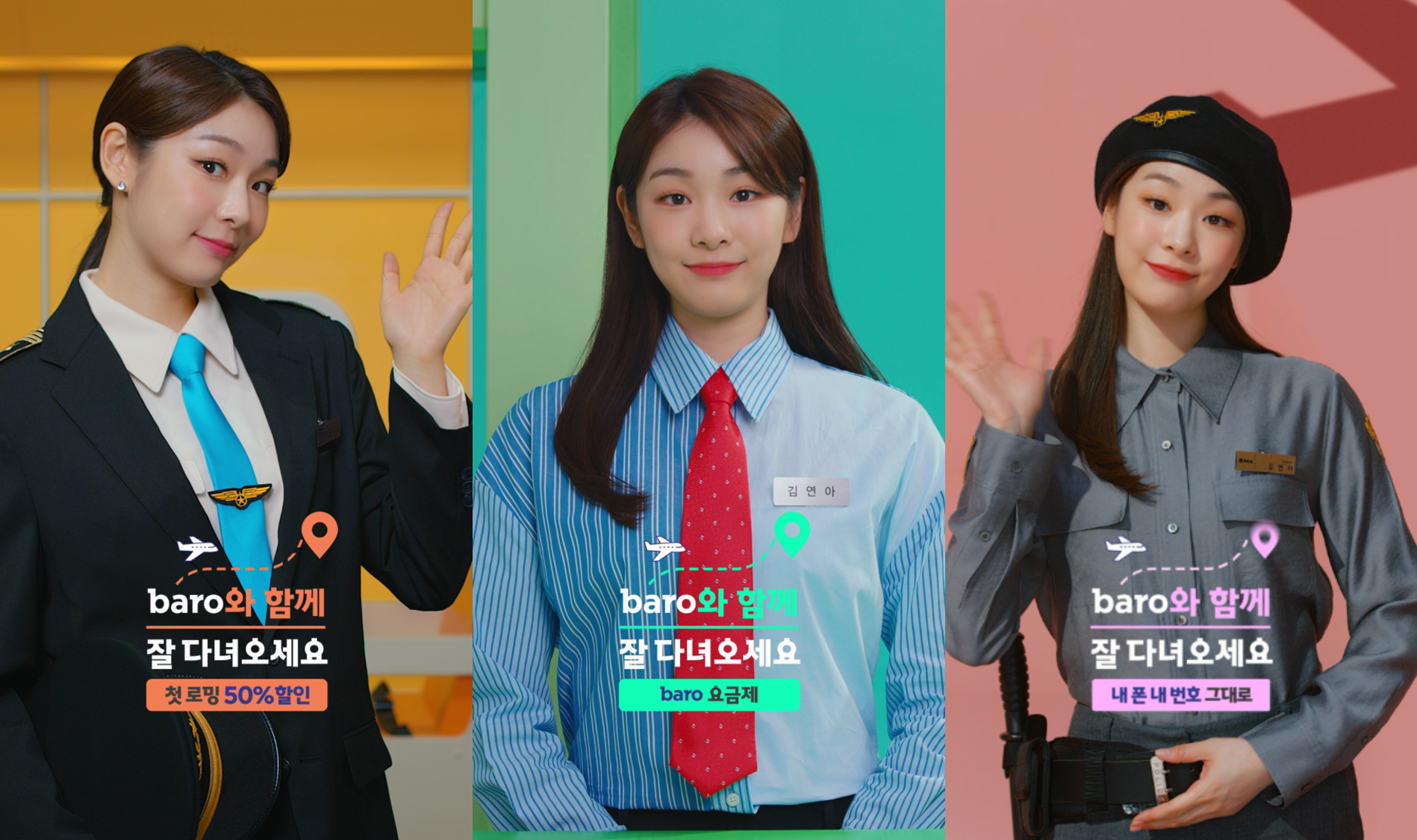 baro 상품의 혜택을 기내 방송, 수하물 보안 검색, 출입국심사 등 해외여행 입출국 시 공항에서 겪을 수 있는 상황 속에서 SK텔레콤 모델인 김연아가 소개해 이해도를 높이고 공감대를 형성한다. 동시에 'baro와 함께 잘 다녀오세요'라는 카피와 포스트코로나 시대에 맞춰 달라진 여행 문화를 간접적으로 보여줘 'baro'를 사용하는 것만으로도 안전한 여행에 도움이 된다는 점을 자연스럽게 녹여냈다.