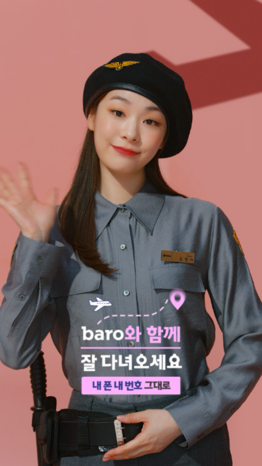 baro 상품의 혜택을 기내 방송, 수하물 보안 검색, 출입국심사 등 해외여행 입출국 시 공항에서 겪을 수 있는 상황 속에서 SK텔레콤 모델인 김연아가 소개해 이해도를 높이고 공감대를 형성한다. 동시에 'baro와 함께 잘 다녀오세요'라는 카피와 포스트코로나 시대에 맞춰 달라진 여행 문화를 간접적으로 보여줘 'baro'를 사용하는 것만으로도 안전한 여행에 도움이 된다는 점을 자연스럽게 녹여냈다.