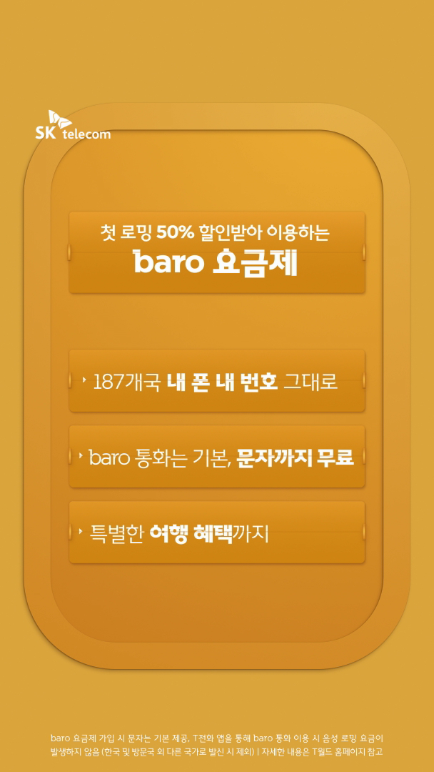 ▲ SK텔레콤 'baro와 함께 잘다녀오세요' 캠페인 첫 로밍 50% 할인 편