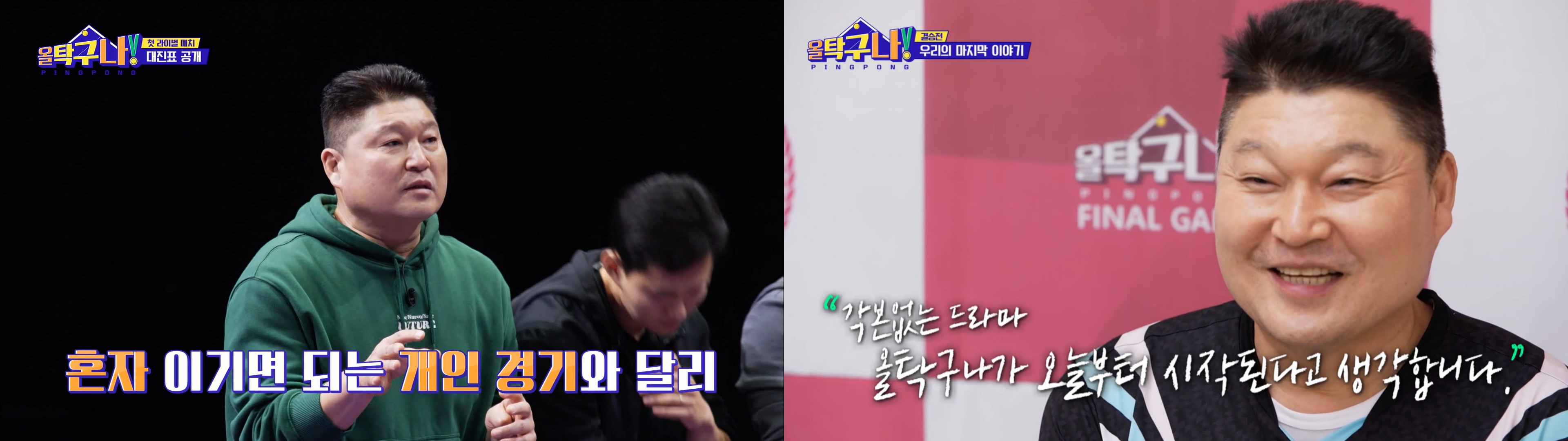 JTBC ‘뭉쳐야 찬다’부터 SBS ‘골 때리는 그녀’ 등 다양한 스포츠 예능이 인기를 얻으면서 예능가에서는 '스포츠'가 떠오르는 키워드가 됐는데요. 스포테이너 1세대인 강호동도 빠질 수 없죠. ‘tvN 올 탁구나!’를 통해 탁구 전도사로 나서며 오랜만에 스포츠에 대한 열정을 불태웠습니다. ‘올 탁구나!’는 탁구를 사랑하는 스타들이 특훈과 도전을 통해 최강 탁구팀으로 거듭나는 과정을 그린 국내 최초 본격 탁구 예능인데요. 연예계 탁구 강호로 손꼽히는 그이지만 초심으로 돌아가 수많은 경기와 훈련을 통해 실력을 키웠습니다. 명불허전 스포츠맨쉽을 발휘하는 건 물론 탁구와 관련된 다양한 지식을 방출하며 스마트함을 뽐냈는데요. 강호동은 맏형이자 정신적 지주로서 동생들을 이끌며 중요한 순간에 한 방을 날리는 각본 없는 성장 드라마를 보여줬습니다.