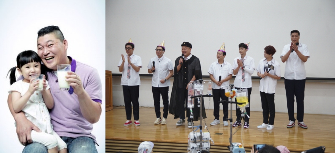 우유 홍보대사 활동을 시작한 2010년엔 우유 1만 개를 ‘초록우산 어린이재단’에 전달했습니다. 여기에 어린이날이면 병원에 방문해 환아들에게 웃음을 선물하는 슈퍼맨으로 변신, 초통령 이상의 존재감을 발산했습니다. 2019년에는 JTBC ‘아는형님’ 멤버들과 함께 서울대 어린이병원 환아들을 찾아 훈훈함을 자아냈습니다.