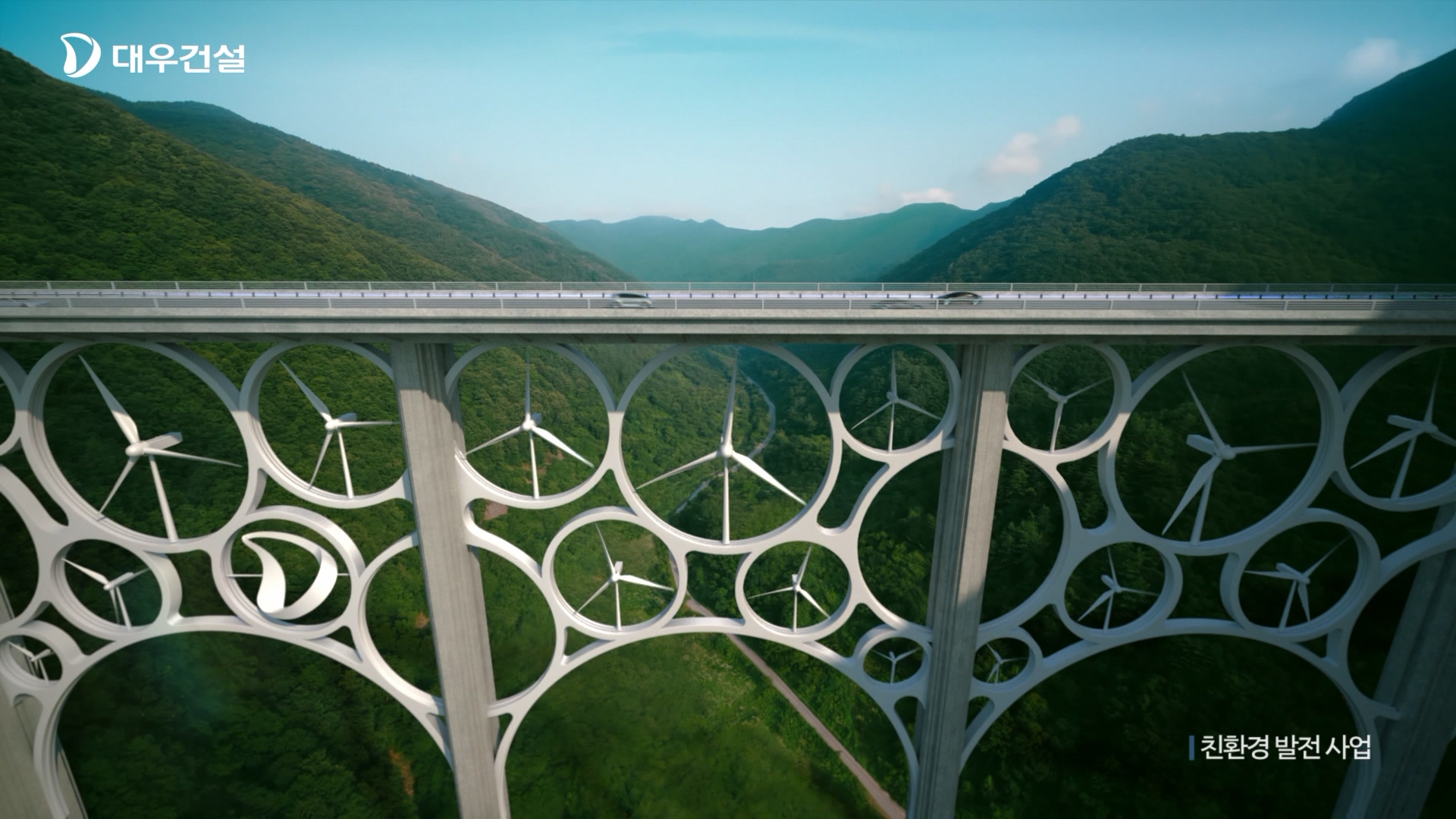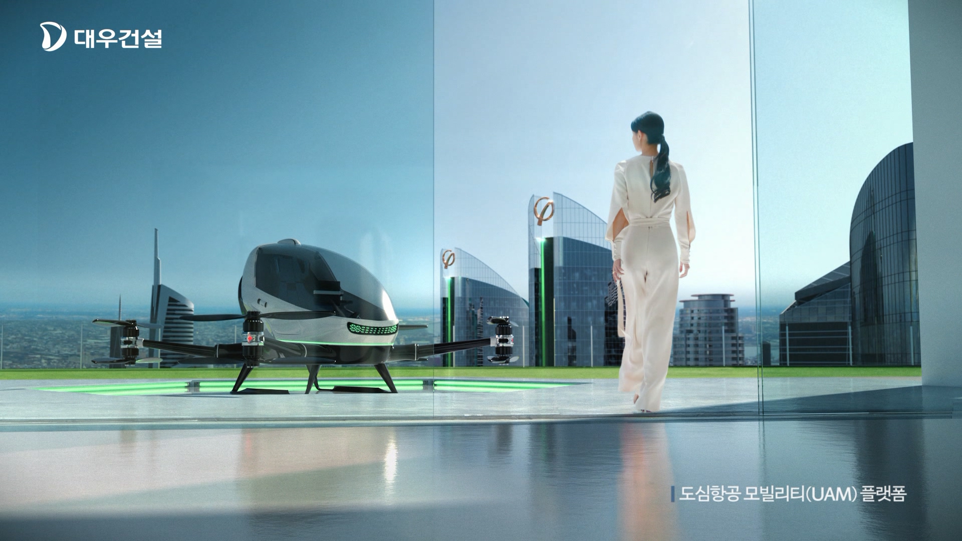 대우건설의 ‘미래지향적 DNA’를 표현하기 위해 수개월간의 3D 작업을 통해 LED 해저터널, 친환경 풍력발전 사업, 도심항공 모빌리티(UAM) 플랫폼과 같은 미래사업 소재를 리얼하게 구현했다. 현실처럼 실감나게 표현된 대우건설의 미래 청사진은 보는 이들의 관심과 주목을 이끌고 대우건설의 미래 기술력에 대한 기대감을 높인다.