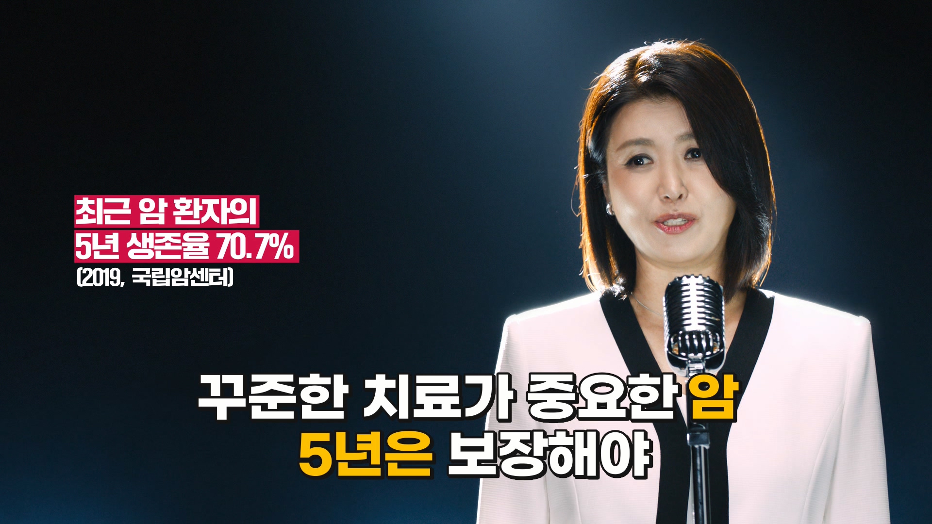 든든한 진단금, 직접치료금 5년 보장, 최신 치료비 지원 등 보장 혜택을 오디션에 도전하는 각각의 후보로 등장시켜 소개한다. 궁극적으로 모든 보장 혜택이 모인 '건강플러스 암보험'이 오디션의 최종 우승자가 되는 스토리로 구성, 해당 상품의 장점을 자연스럽게 어필했다.